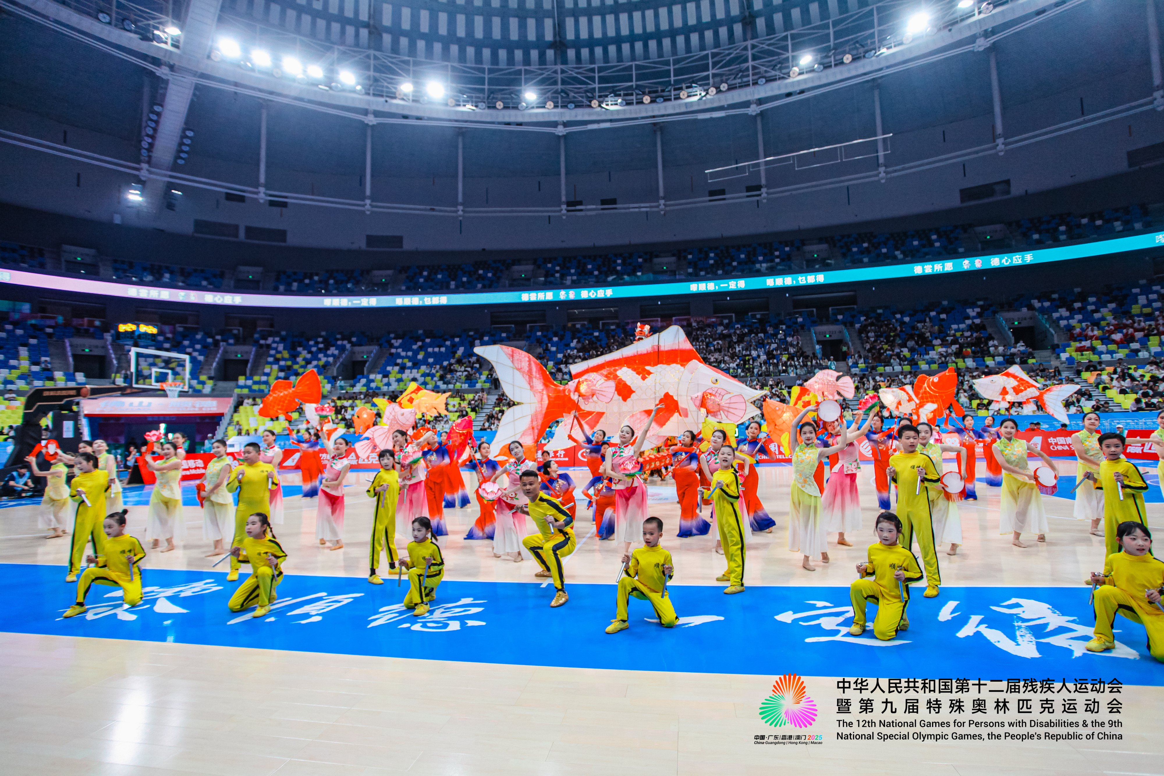 值得一提的是,当天,顺德德胜体育中心内,在山东与河北的对决开始前,历史文化名城佛山还奉上了由超百人带来的《狮舞岭南 风生水起》特色体艺展演,其中,六米的大良鱼灯很是显眼,千年非遗与现代舞韵,在残特奥会篮球赛场上实现了融合与碰撞,每一次腾跃和舞动都彰显和传递着“敢为人先”和顽强拼搏的精神。
