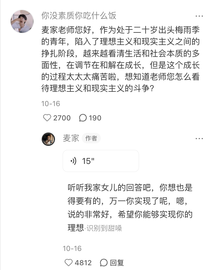 #听了语音,嗓音确实很甜 图源:小红书@麦家
