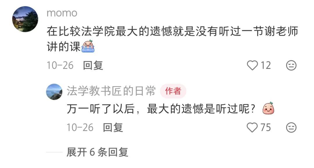 #中国政法大学教授谢立斌老师@法学教书匠,也会“担忧”同学们遗憾听过自己的课。图源:小红书@法学教书匠的日常