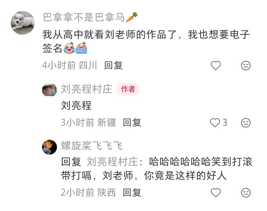 刘亮程的笔记下,网友们纷纷对这位“从小考到大”的作家索要电子签名。当然,刘亮程也毫不吝啬,见者有份。