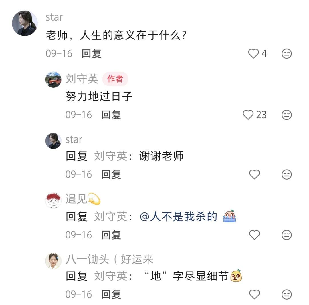 类似的对话还有很多,而无论问题多复杂,刘守英的回答都是独特的“一句体”,同网友高强度互动的他还获得了“最具活人感教授”的美名。