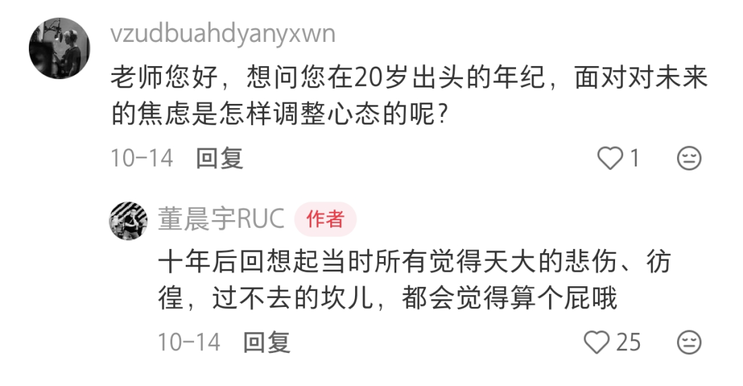 面对大学生活的无意义感,他说“别用大学教育的问题惩罚自己”;面对人生的迷茫,他说“一边迷茫一边做好手中的事”;而那些20岁出头时面临的焦虑、悲伤和彷徨,他同样有过,但十年后再回想起来,“算个屁哦”。