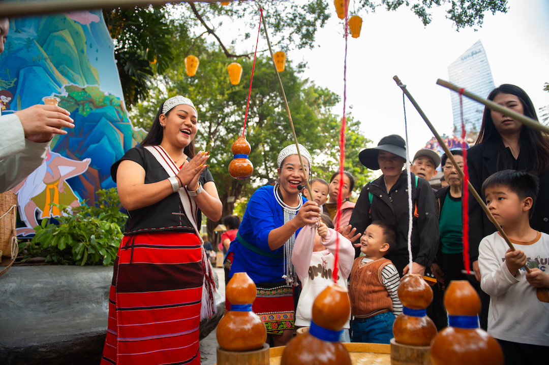 佤族《吊葫芦》互动体验。 南方+ 何俊 拍摄