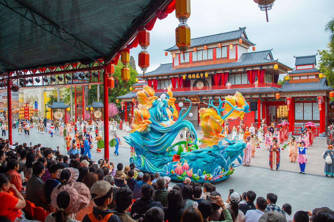 景区同步升级“锦绣霓裳·盛世华服巡游”,设华服、民族盛装等方阵,并开放华服租赁与民族换装体验。上影元、上美影授权的《葫芦兄弟》等3大动画IP美陈,也为游客带来沉浸式互动体验。全园演艺全新升级,《锦绣盛市·梦华录》场景演出融合互动戏剧与消费,四大经典剧目《龙凤舞中华》等每日上演。