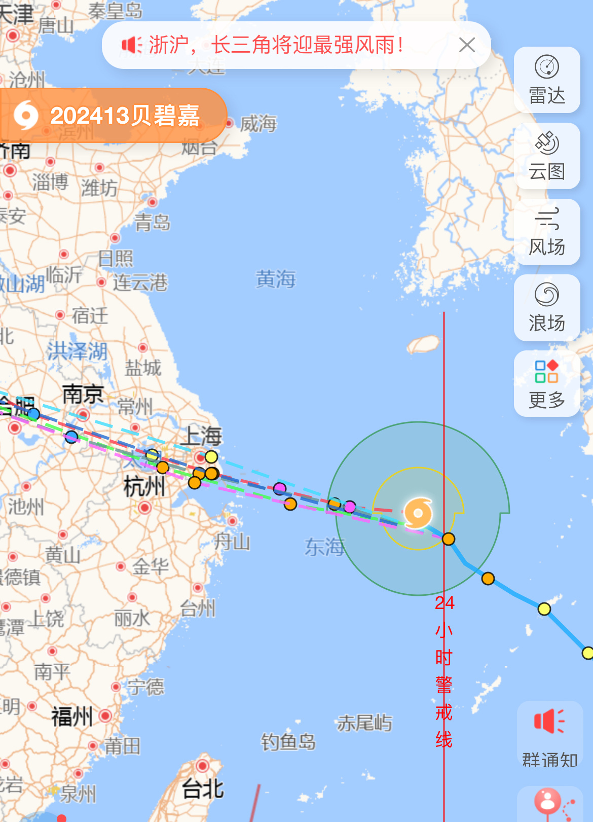 台风路径显示,今年第13号台风“贝碧嘉”已经进入24小时警戒线。