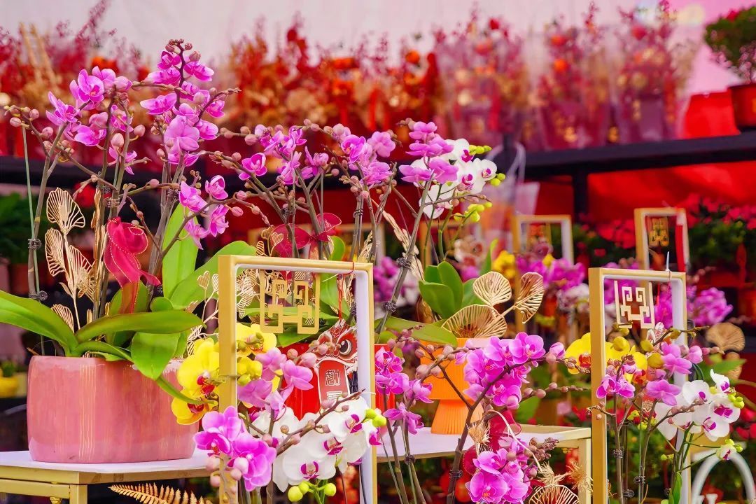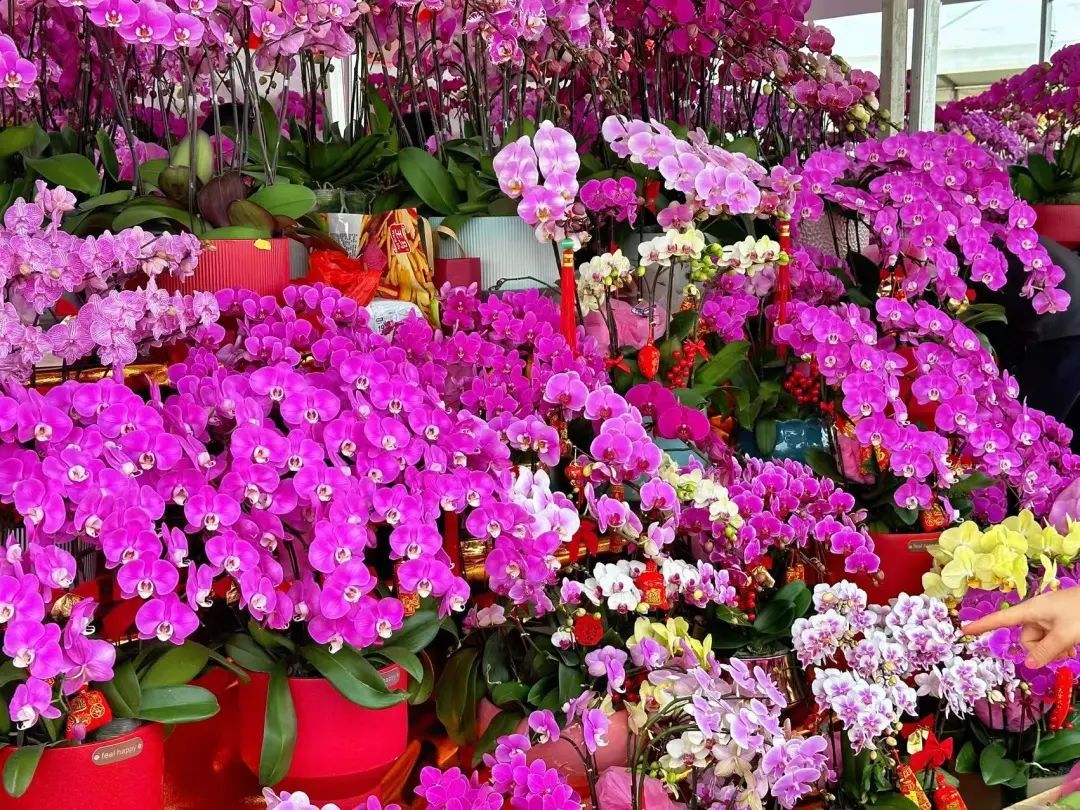 上百种年花云集,经典的蝴蝶兰、年桔等贺年花卉,百合、剑兰等常规鲜花,苏铁等盆景,让市民迎新年更有仪式感。