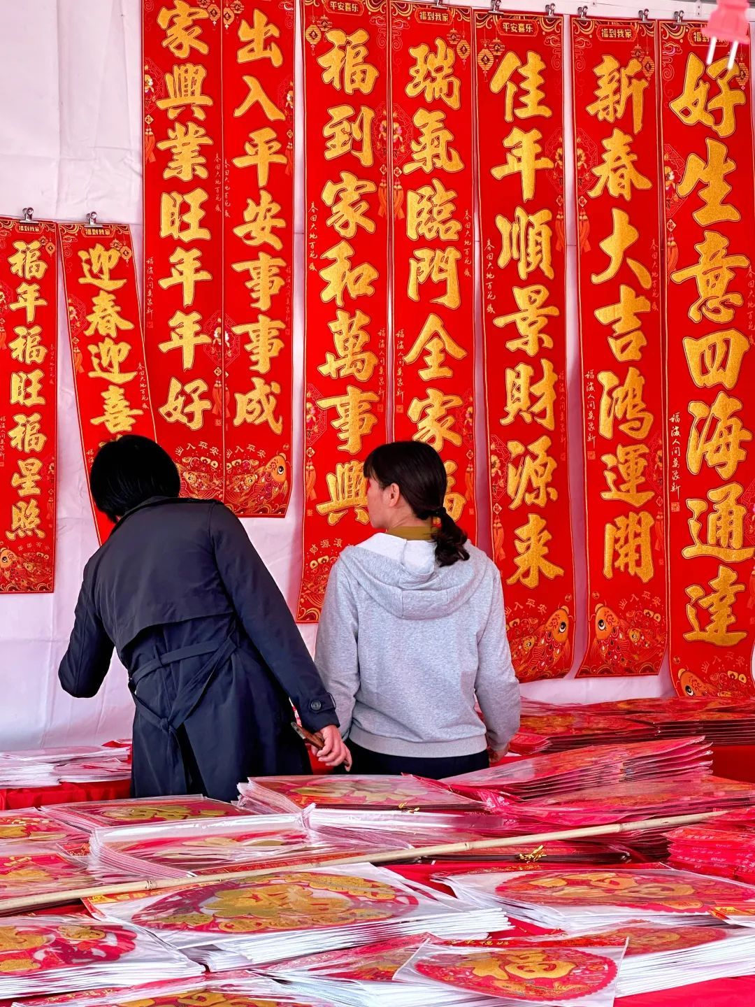 窗花、春联、字画……在年货挥春区,大家可以提前把喜气洋洋的春节装饰品带回家。