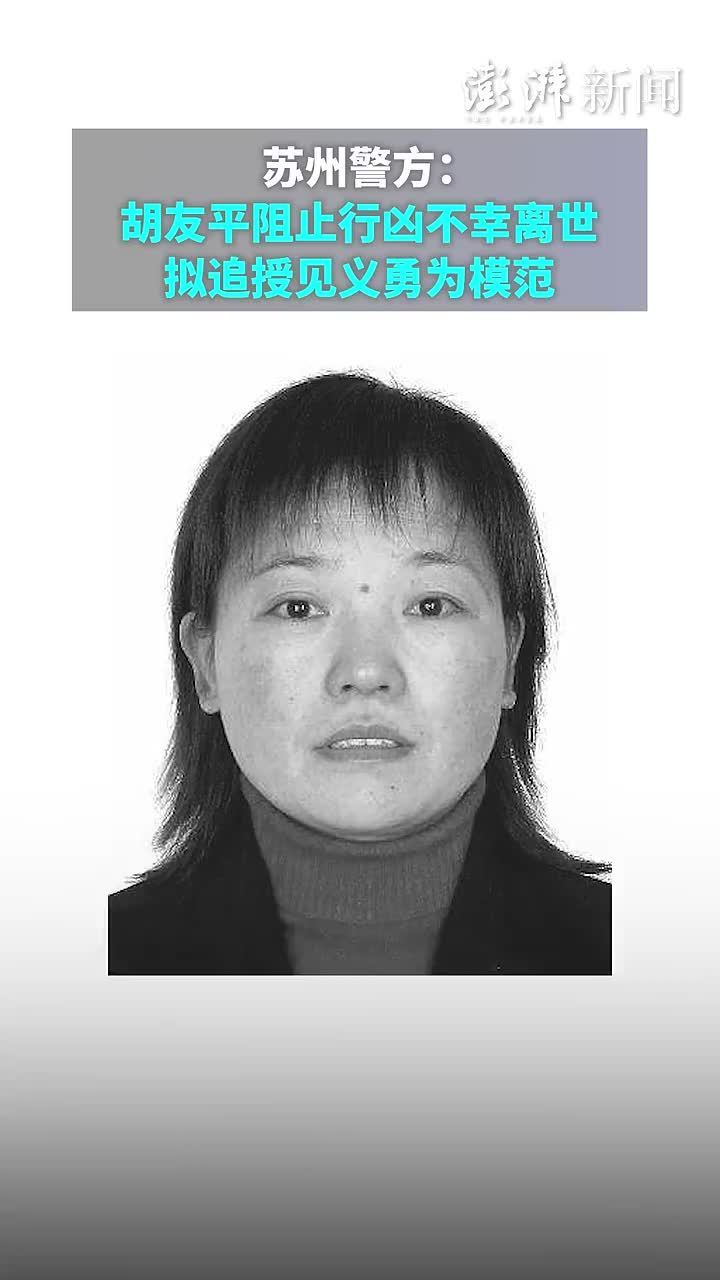 苏州警方:胡友平阻止行凶不幸离世,拟追授见义勇为模范