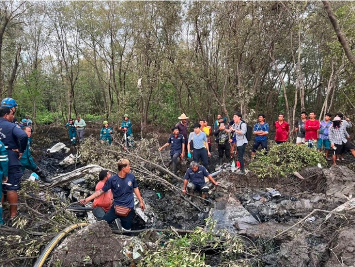 这架飞机于当地时间下午3点18分左右在北柳府邦巴贡区的考丁寺后面的红树林沼泽地带坠毁。关于到底发生了什么,说法不一。一些当地人报告说,他们听到了天空中的爆炸声,而另一些人则看到这架小型飞机向稻田急剧下降,最终冲入红树林沼泽,然后听到了巨大的爆炸声。