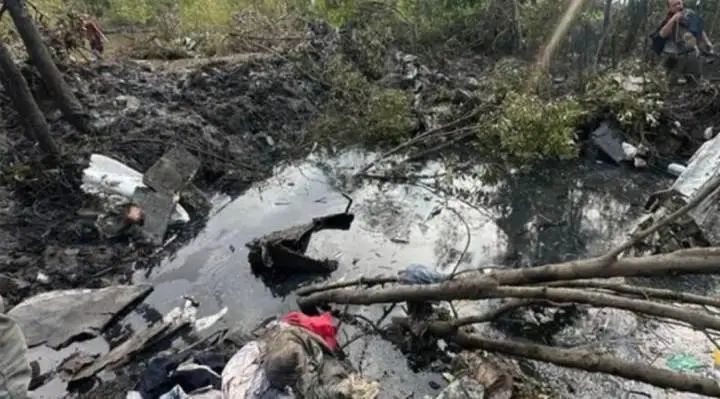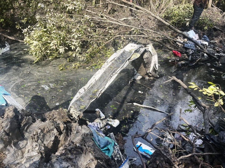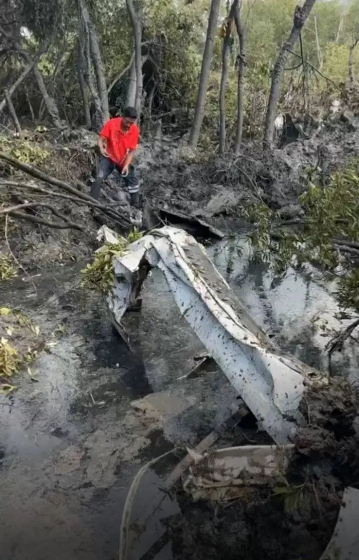 机上有5名乘客和4名机组人员。由于海水涌入并淹没了该地区,警方使用挖掘机清理了坠机现场的水道,该地区周围环绕着稻田、灌溉渠、鱼塘和养虾场。搜救现场的照片似乎显示了飞机的残骸,并在现场发现了衣物。