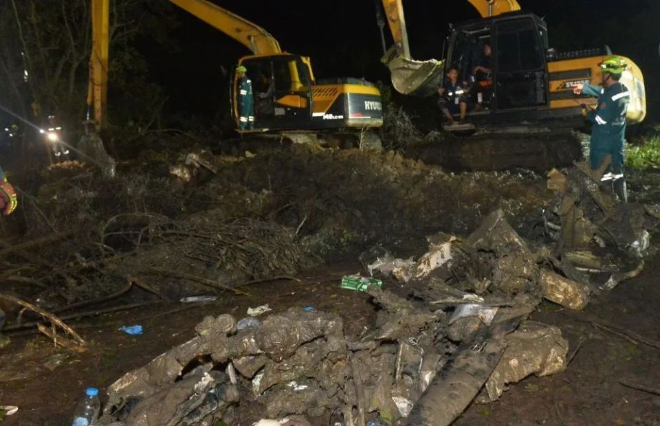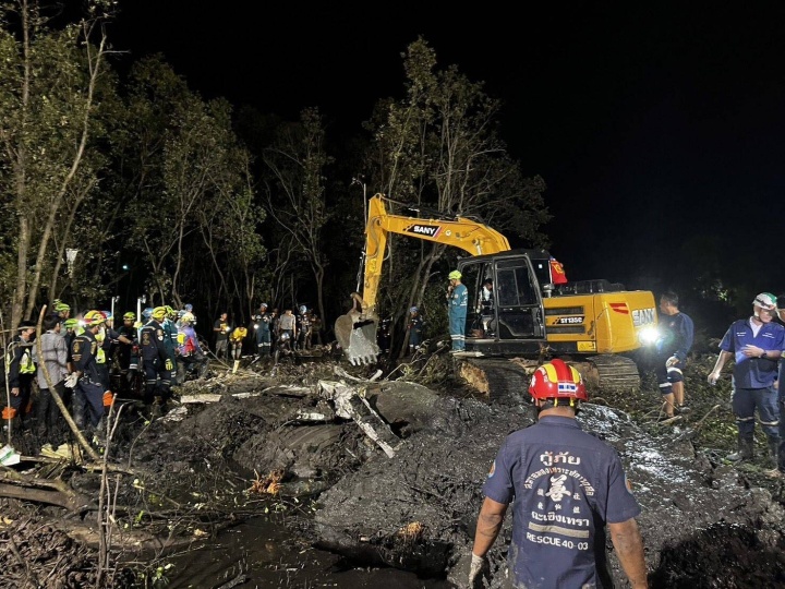 8月23日凌晨,救援人员在泰国北柳府的小型飞机坠毁现场工作