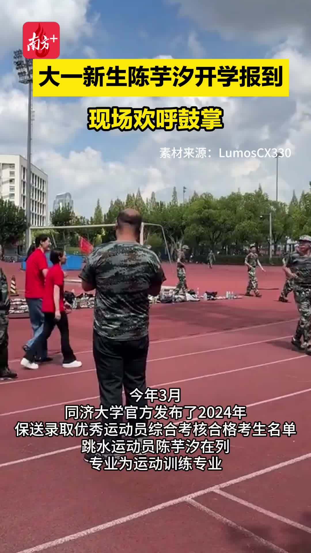 大一新生陈芋汐开学报到,现场欢呼鼓掌