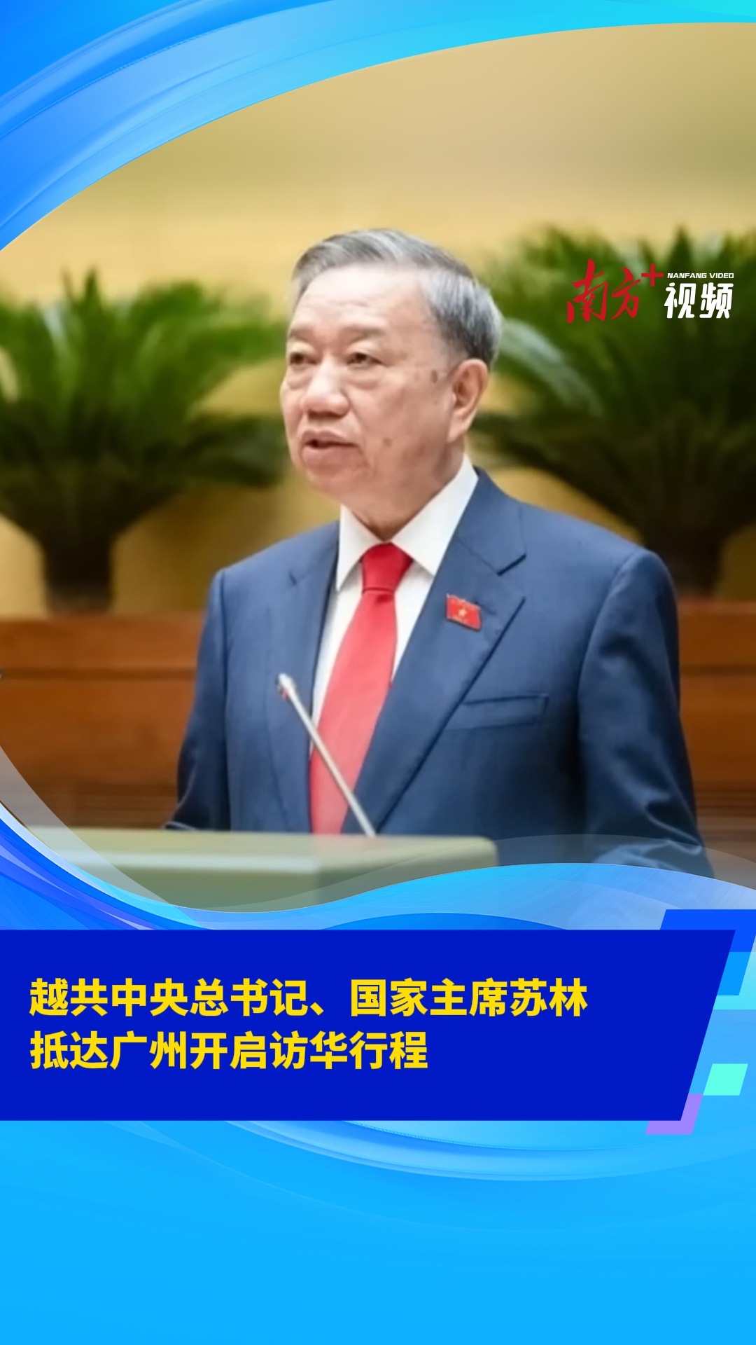越共中央总书记、国家主席苏林于8月18日至20日来华国事访问。今天(18日)上午9时25分,苏林总书记乘专机抵达广州。详情>>