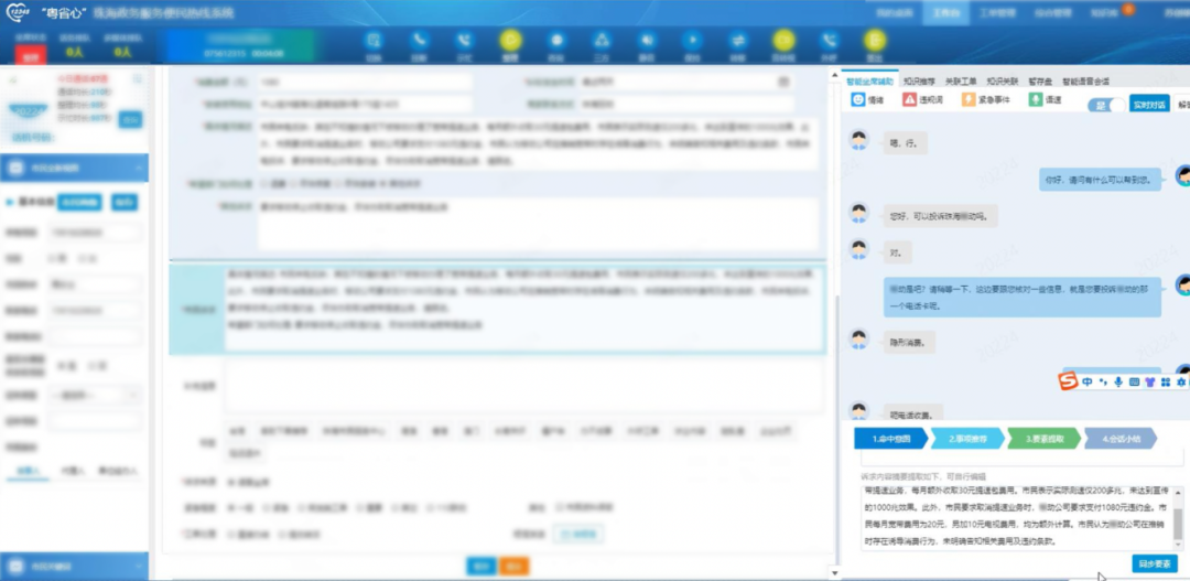 技术赋能,AI应用,推动效率与质量双提升。珠海12345热线作为市民与政府沟通的核心桥梁,年均受理诉求超205万件。面对庞大的服务需求,传统人工处理模式面临效率与精准度的双重挑战。为此,珠海电信助力热线后台运营引入DeepSeek大模型技术,为12345热线带来了六大核心突破“智能意图理解—智能要素提取—智能辅助填单—智能标签推荐—智能对话小结—智能知识挖掘”。
