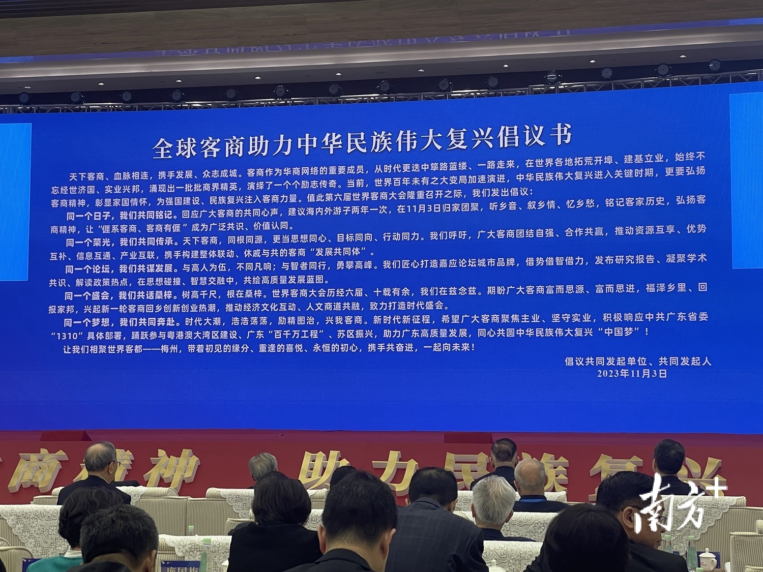 大会期间,全国政协委员、广东省客属海外联谊会会长、金利来集团董事局主席曾智明宣读《全球客商助力民族复兴倡议书》。