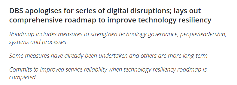 “在过去的几个月里,星展银行一直在尽一切努力加强弹性和业务连续性,并在事件发生时能够更快地恢复。这是一项正在进行的工作,我们在采取补救措施时寻求客户的耐心。”