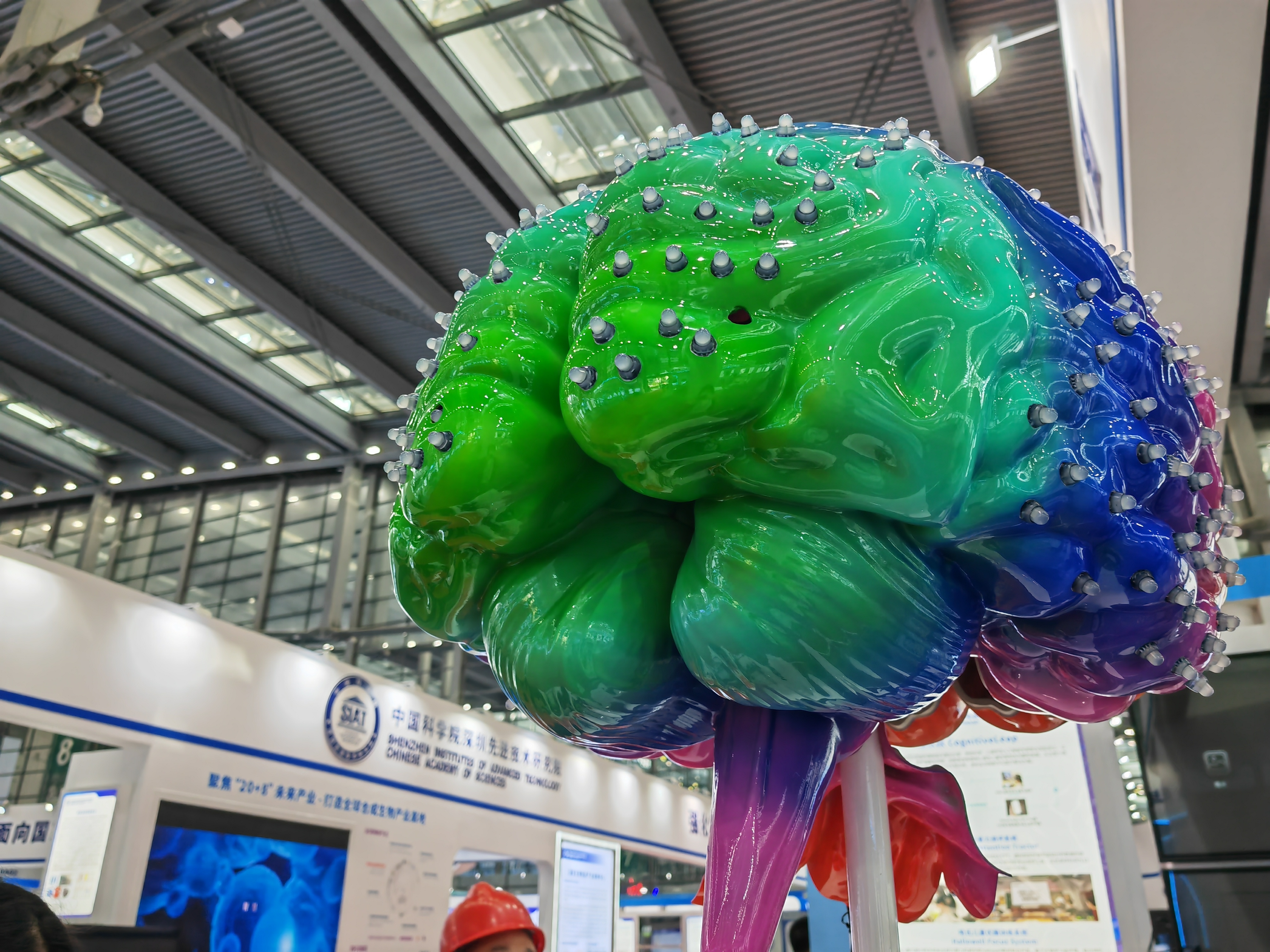第二十五届高交会福田展区8号馆,中国科学院深圳先进技术研究院展位的彩色大脑模型。 南方+ 朱洪波 拍摄