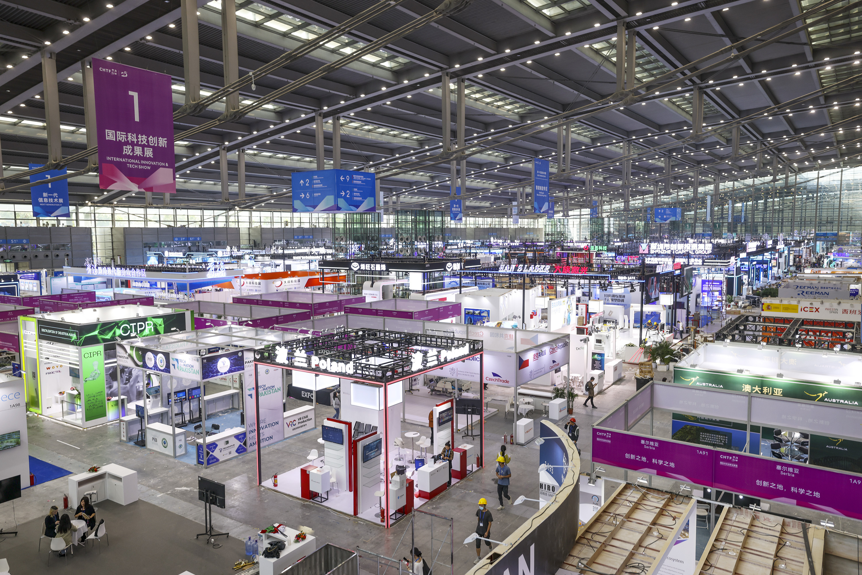 11月14日下午,第二十五届高交会福田展区1号馆即将准备就绪。 南方+ 朱洪波 拍摄
