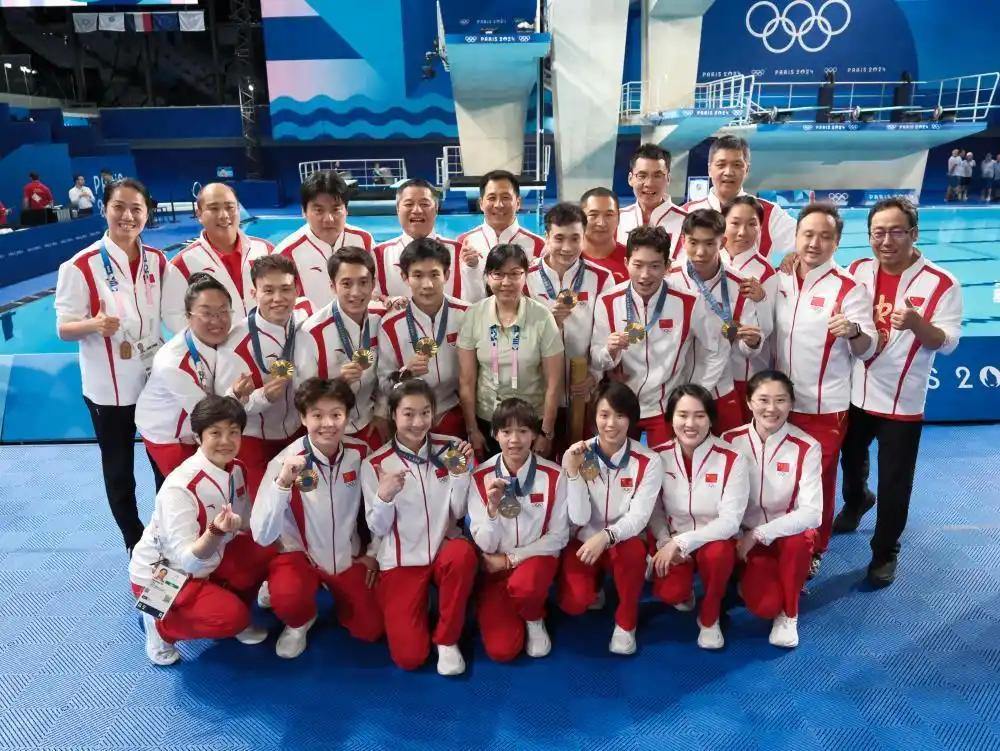 中国跳水梦之队在巴黎奥运会上合影。图片来源:新华社