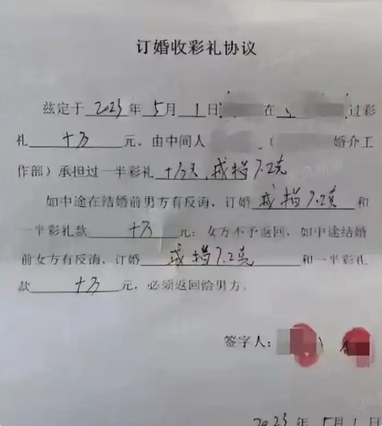 郑女士称,自己对于18.8万元的彩礼并无异议,不过在2023年5月1日举行的订婚宴前,女方曾提出想在婚房房产证上加名,郑女士则认为需要在结婚后。5月1日,席某某家为二人举办订婚仪式,当日交付彩礼10万元和7.2克戒指。同时,席某某及其父母书面承诺,结婚一年后在房屋产权证上添加女方的名字。