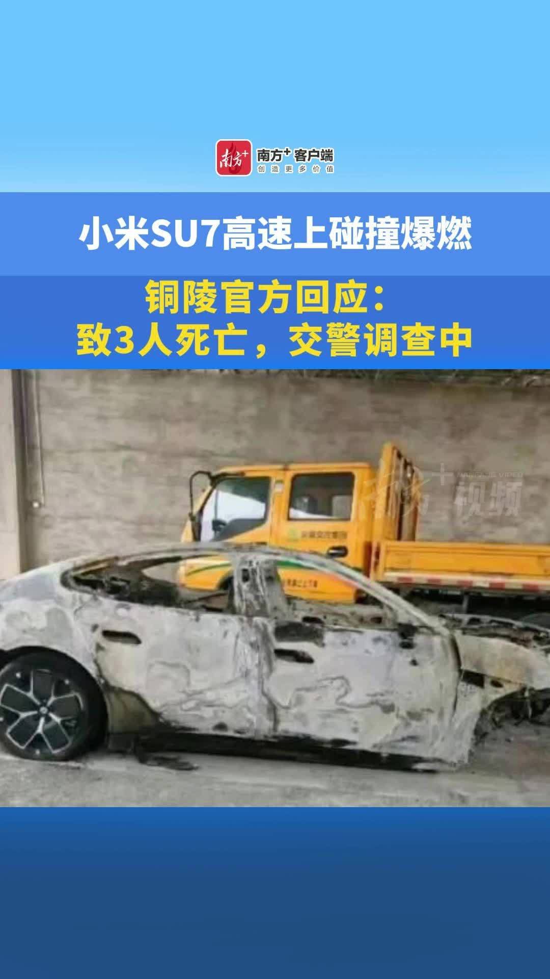 小米SU7高速上碰撞爆燃,铜陵官方回应:致3人死亡,交警调查中