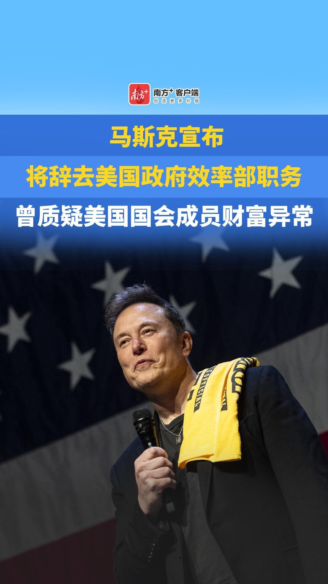 马斯克宣布将辞去美国政府效率部职务,曾质疑美国国会成员财富异常