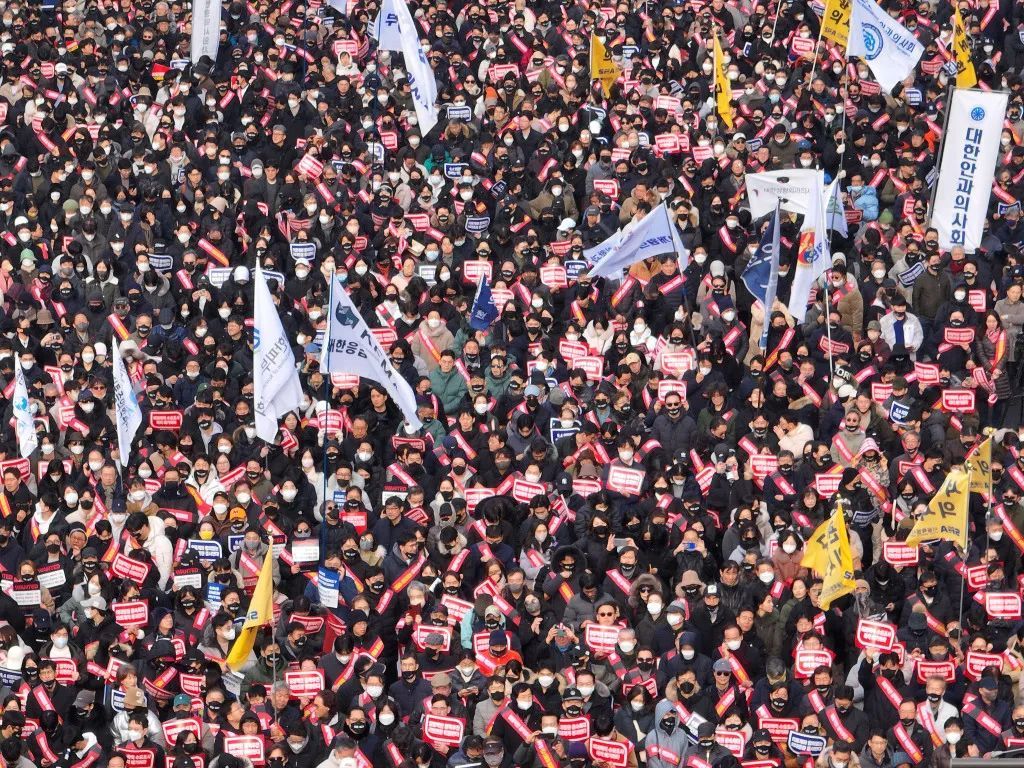 今年2月,韩国政府宣布了“医学院学生扩招计划”,计划从2025年开始,医学生的年度招生名额将增加2000个,扩增额度约为65%,持续五年。政策一经发布,便引发医学界的强烈抵制。3月3日,韩国国会附近,韩国上千名医生举行大规模集会,对该国“医学院学生扩招计划”等医改政策表示不满和抗议。警方估计,大约1.2万人到场。