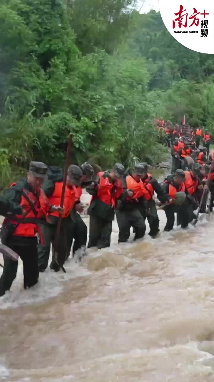 “好多地方都是蹚着洪水、手拉着手前进。”武警韶关支队莫晓明告诉记者,为了保证官兵快速通过,救援部队制定了一条规定“带队干部第一个通过障碍、确保所属战士全部安全通过后,最后一个离开”。这样分批相对集中前行,不仅确保了队伍快速前行,也保证了行进途中安全。