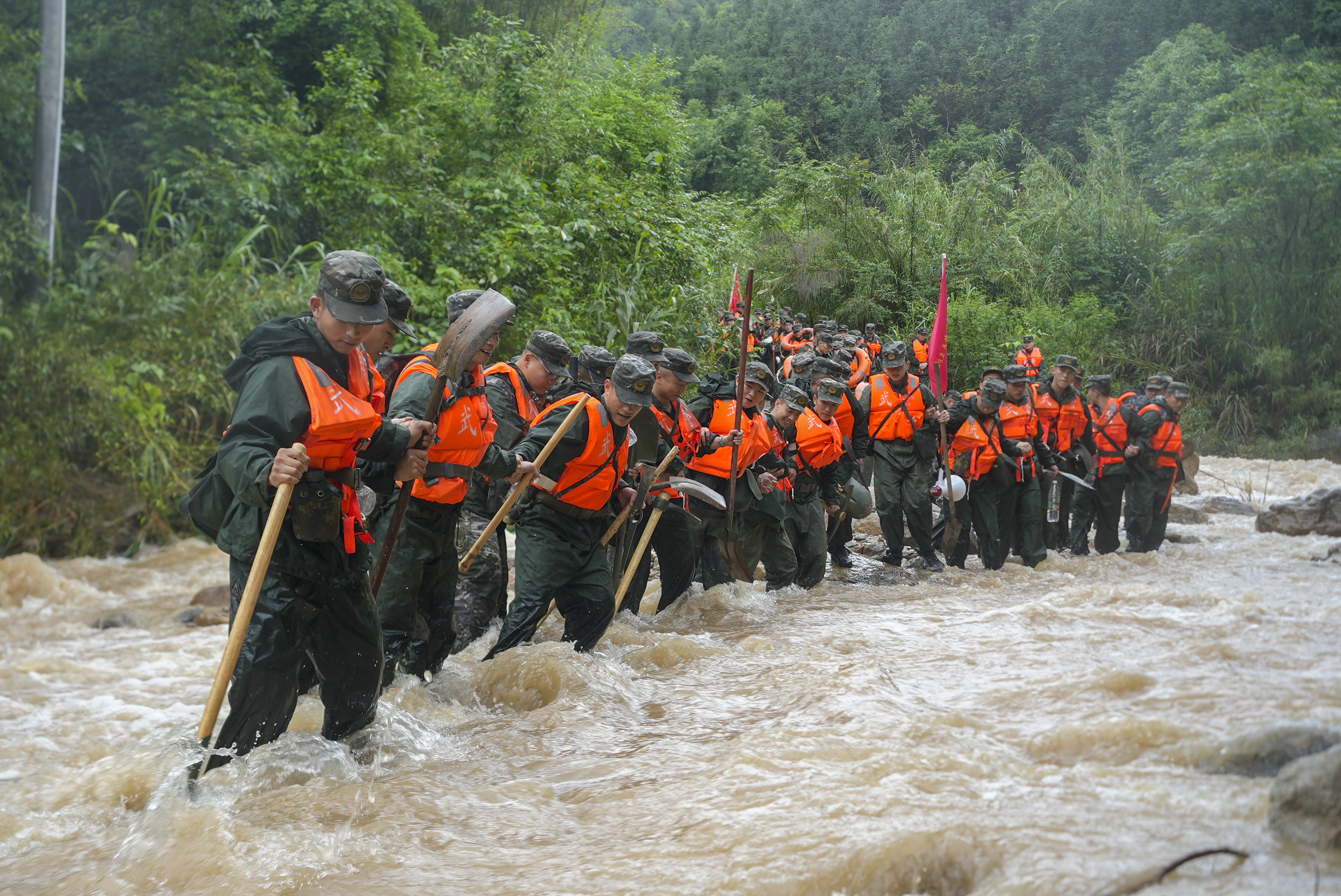 要不是昼夜徒步行军23个小时挺进受灾最严重的江湾镇,进入灾区一线的官兵都无法想象特大洪水带来的伤害,所到之处满是冲毁的道路、破损的房屋、折断的树木,滚落的石头一次又一次挡住了前进的道路。