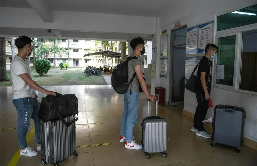 高校大学生在宿舍楼下排队办理入住手续,图源新华社