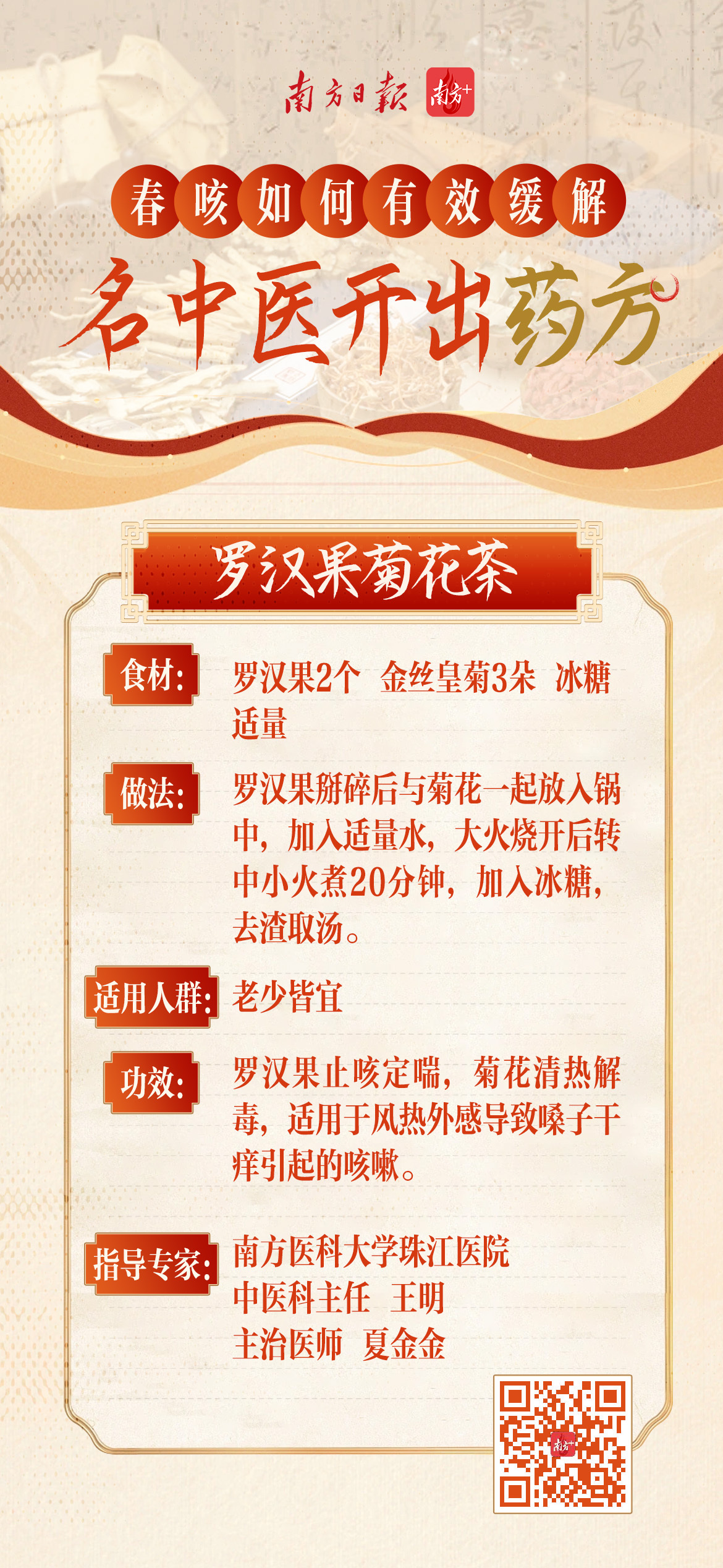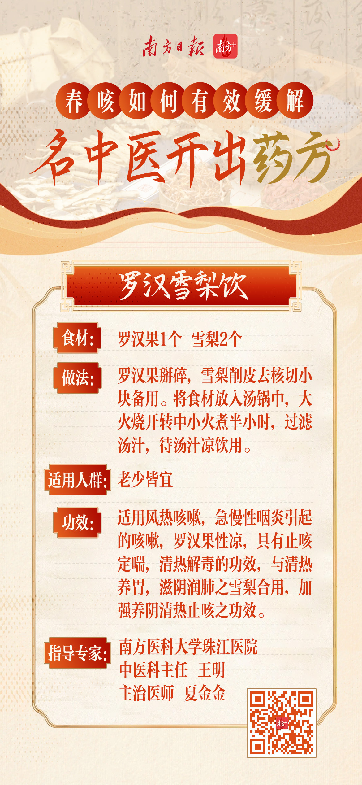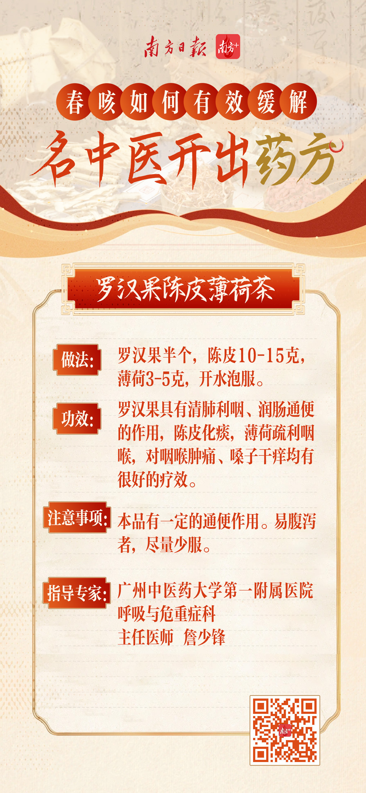 广东省名中医林琳,广州中医药大学第一附属医院呼吸与危重科主任医师詹少锋,广州中医药大学第三附属医院主任中医师孙志佳,南方医科大学珠江医院中医科主任王明、主治医师夏金金为网友开方。速戳↓↓↓