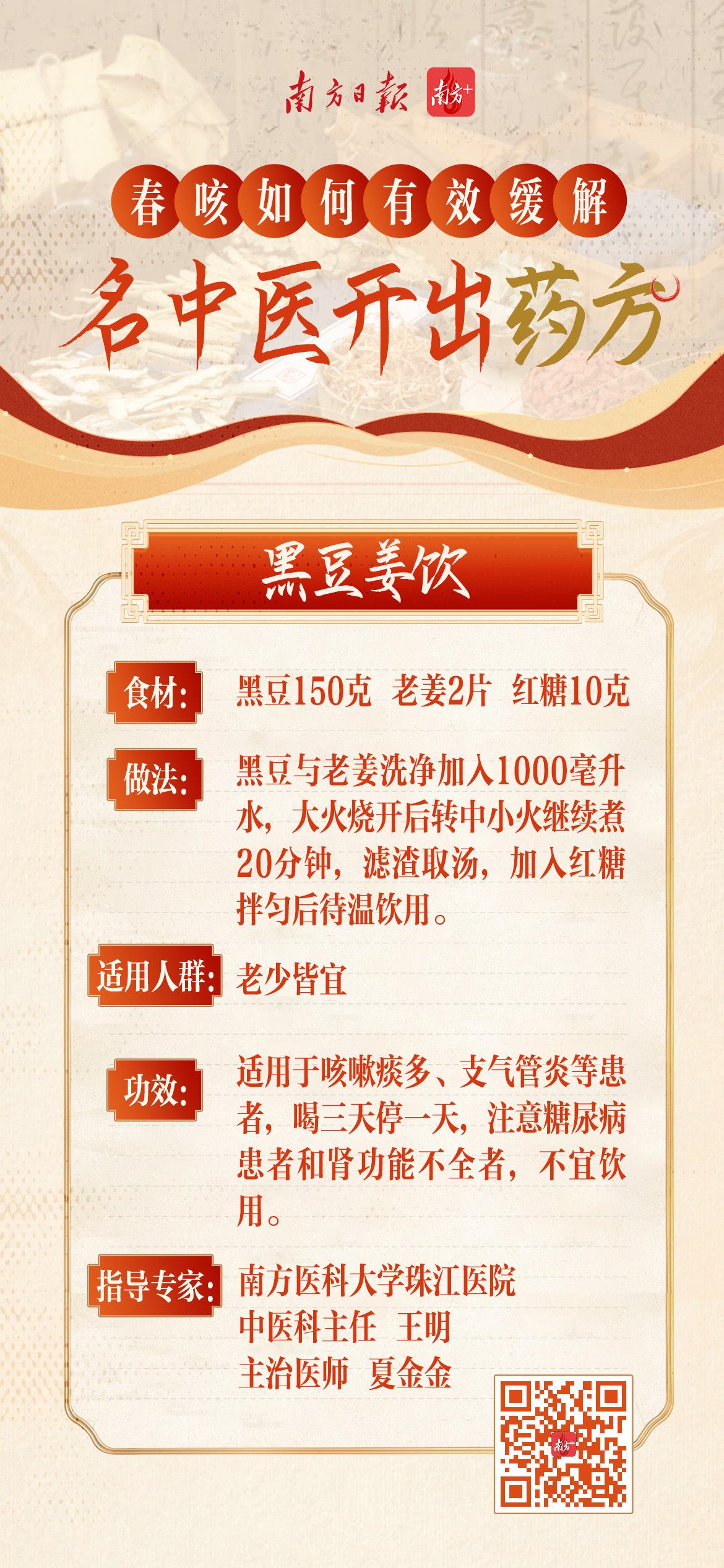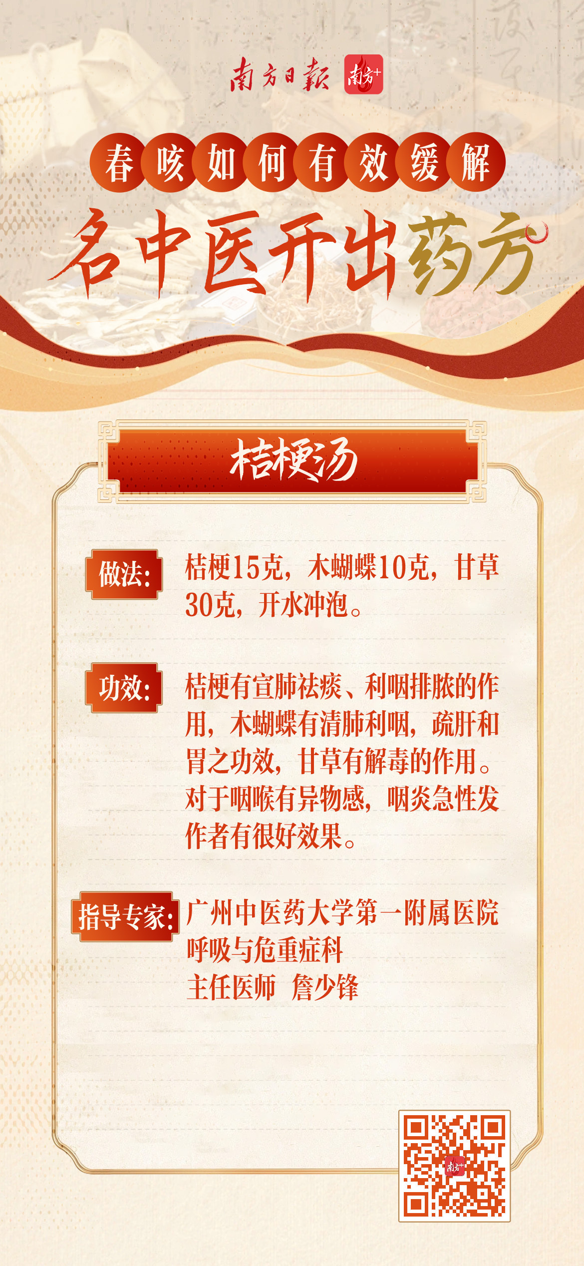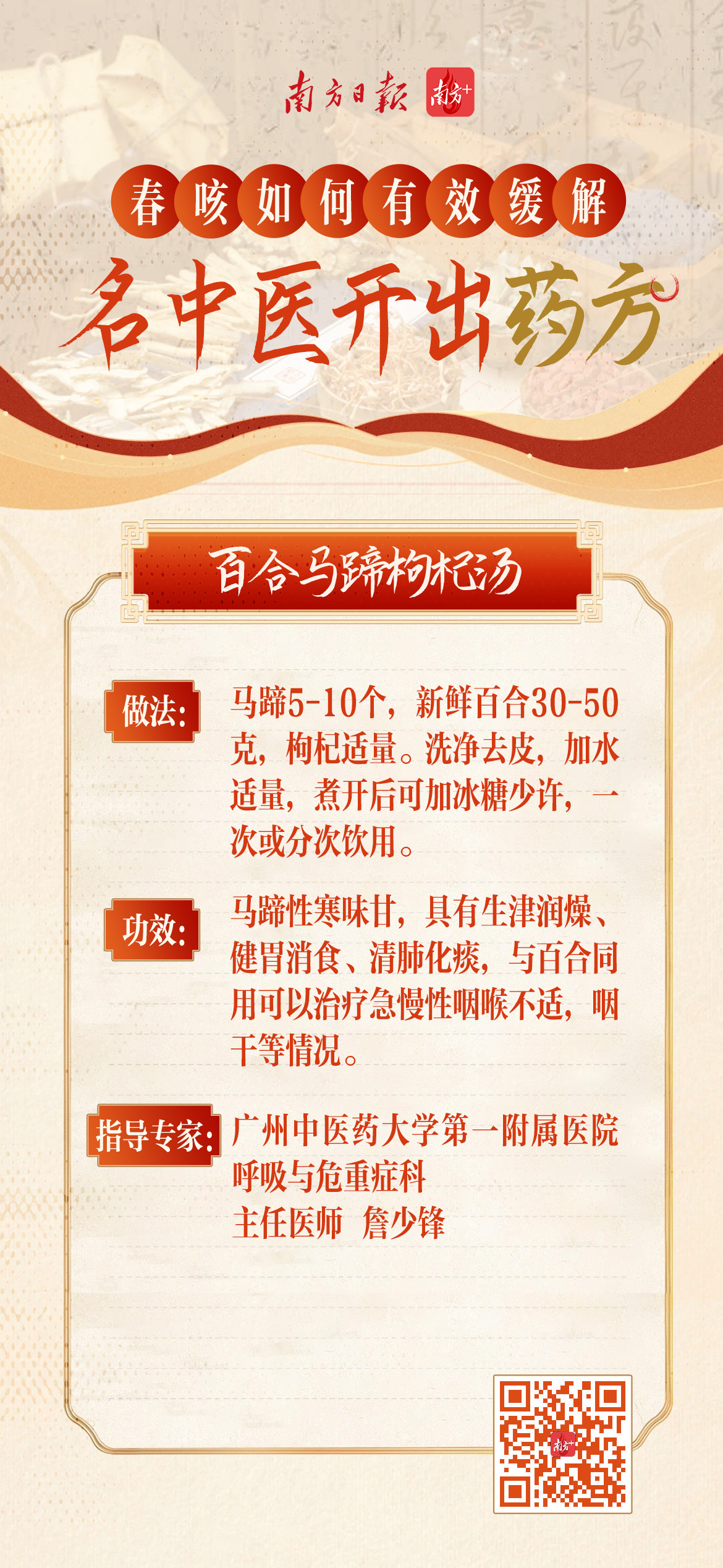 广东省名中医林琳,广州中医药大学第一附属医院呼吸与危重科主任医师詹少锋,广州中医药大学第三附属医院主任中医师孙志佳,南方医科大学珠江医院中医科主任王明、主治医师夏金金为网友开方。速戳↓↓↓