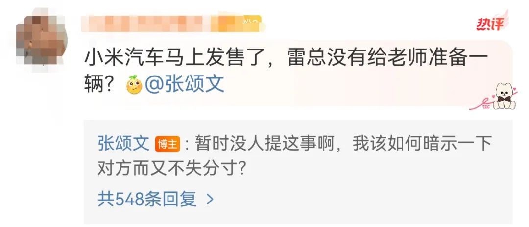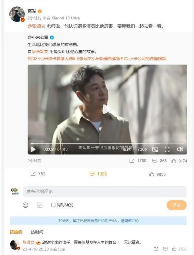 张颂文在该条微博下评论:谢谢小米的信任,愿每位朋友在人生的舞台上,无比精彩。