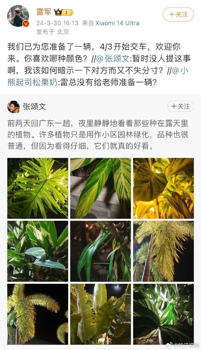 有细心的网友留意到,和其他抢购创始版车型的人无法选择颜色不同的是,张颂文还拥有了选色的 “特权”,让大家直呼“雷总真宠!”“雷总大气”。