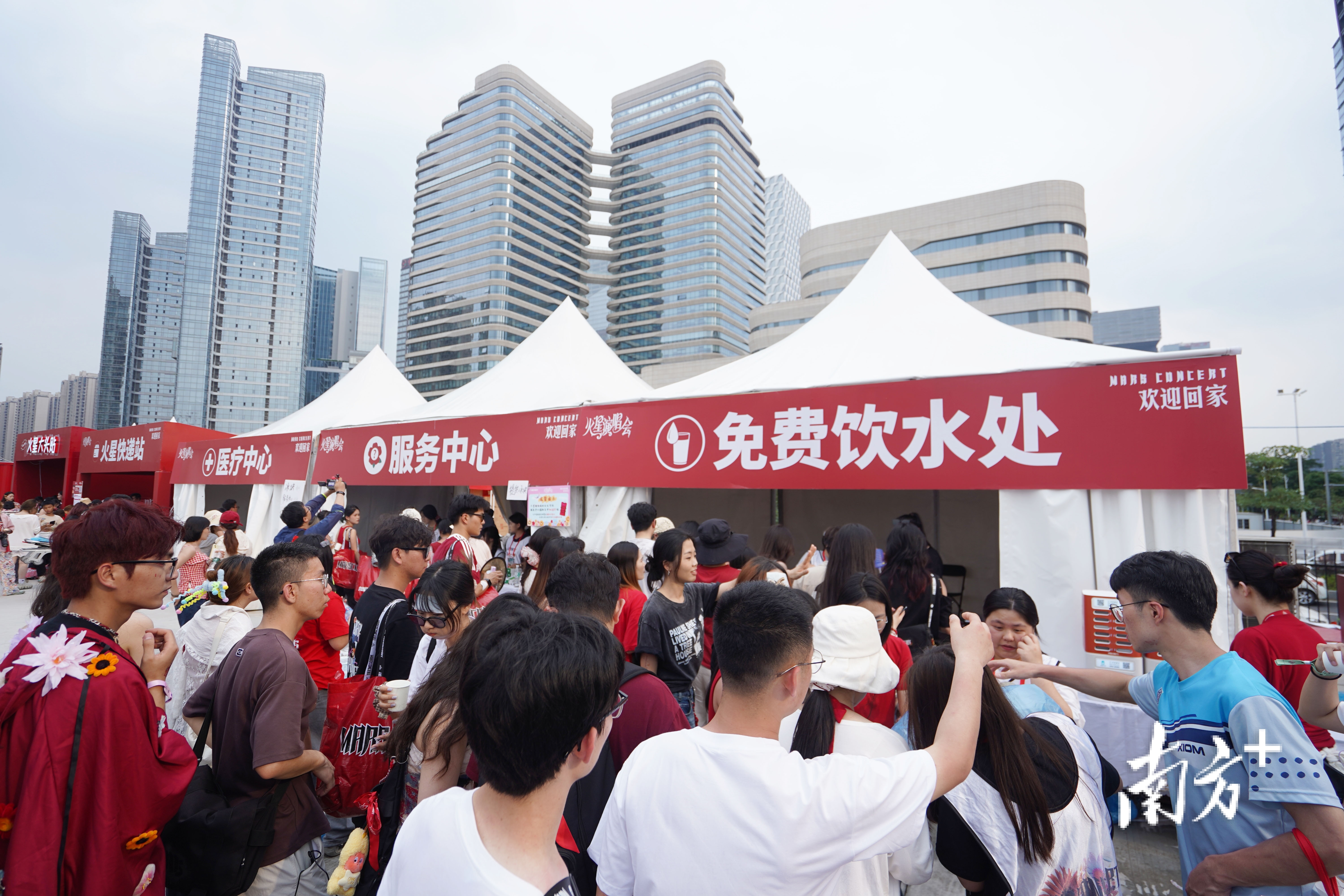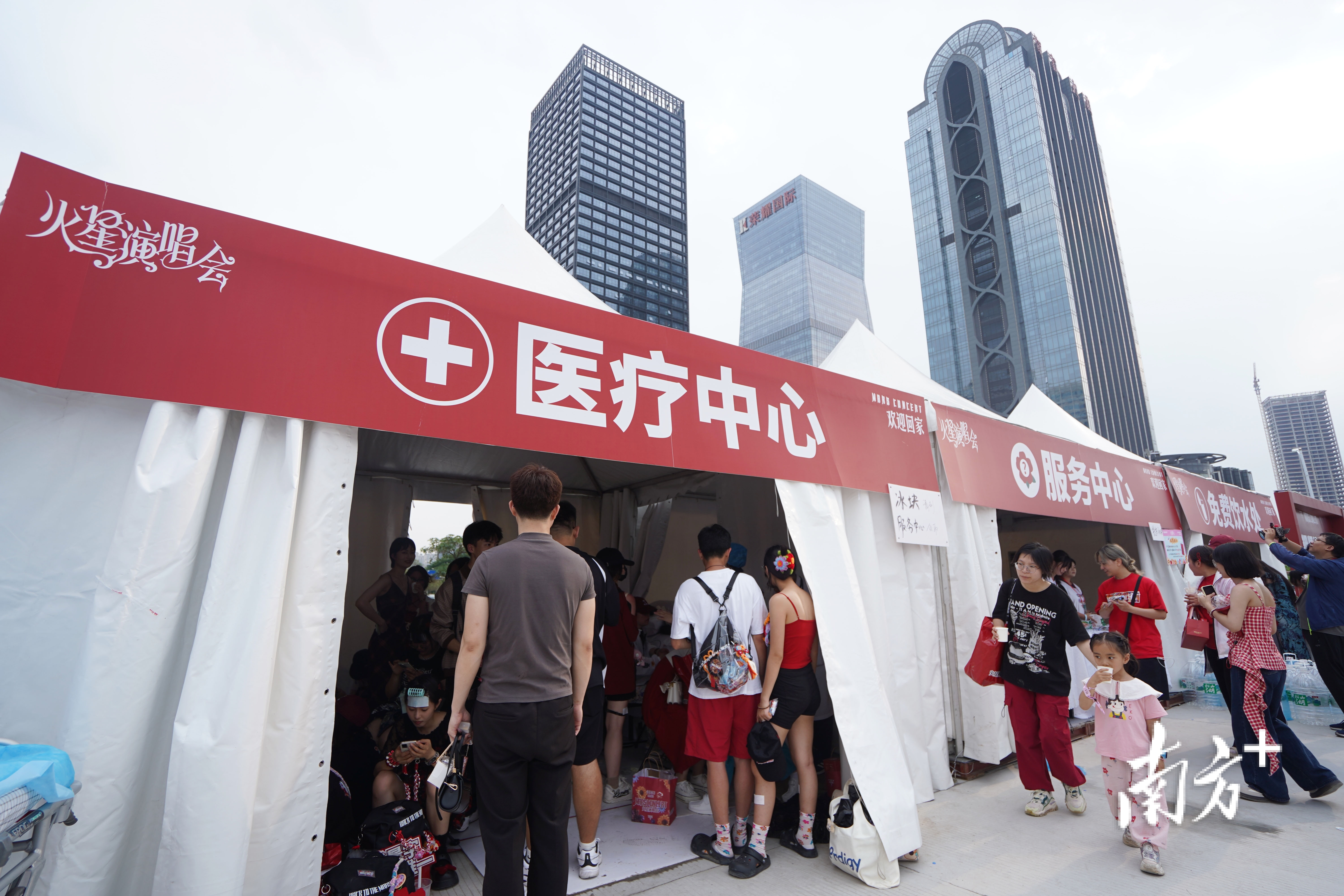这是一个细节满满的演唱会。现场额外增设女卫生间、女士更衣室,卫生间内放置碘伏、棉签、护手霜、创可贴,并免费供应防蚊喷雾、卫生巾、藿香正气合剂等,贴心服务从全国各地远道而来的乐迷朋友。