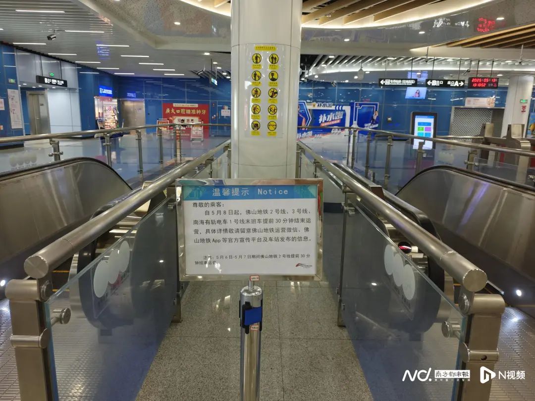 5月8日起,广东佛山地铁集团运营下的所有线路(包括佛山地铁2号线、3号线及南海有轨电车1号线)提前30分钟收车。