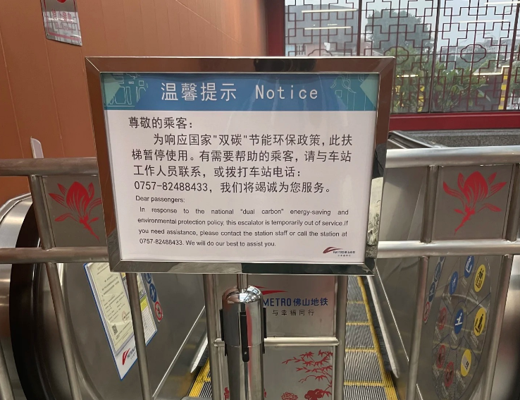 网友反映:4月底佛山地铁关闭了部分下行扶梯。工作人员证实确有此事,不过数天后恢复。