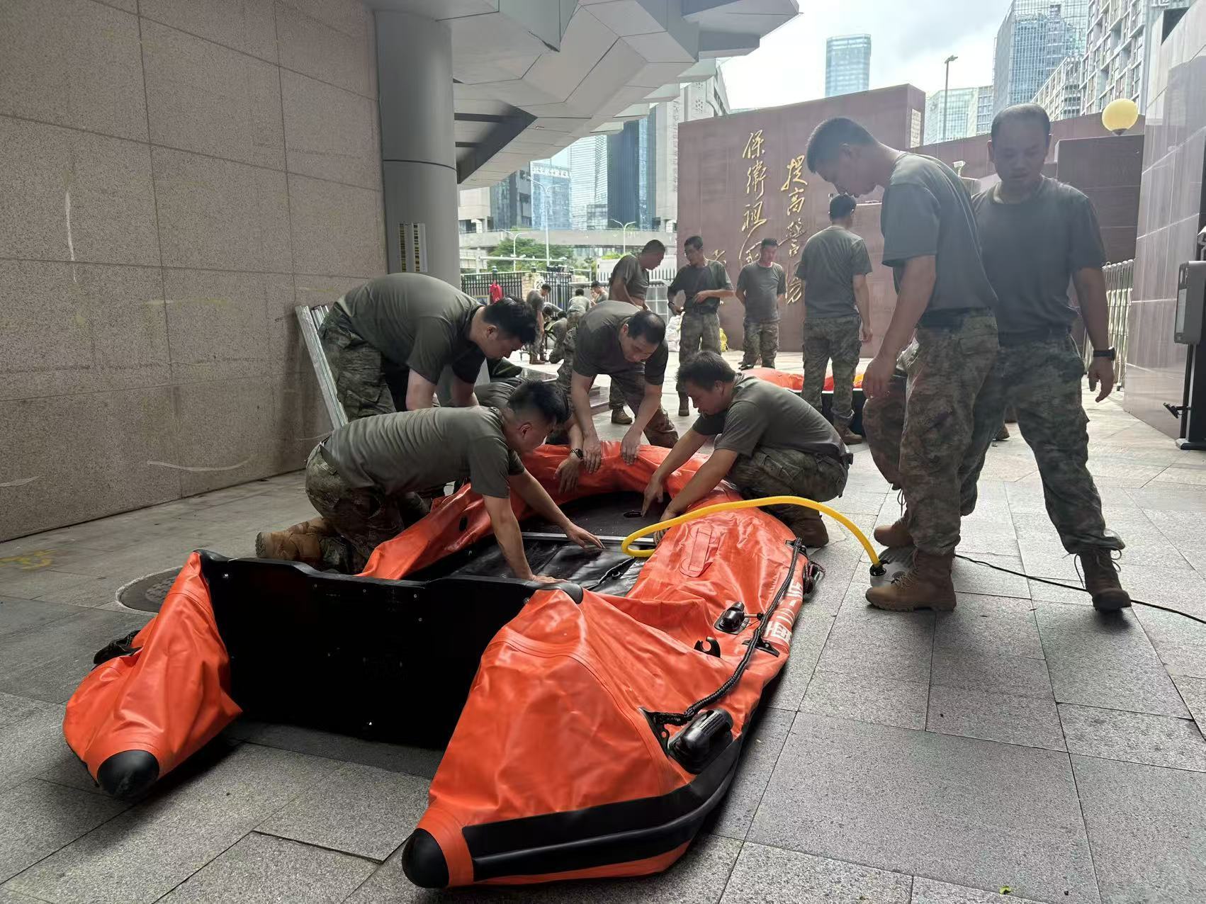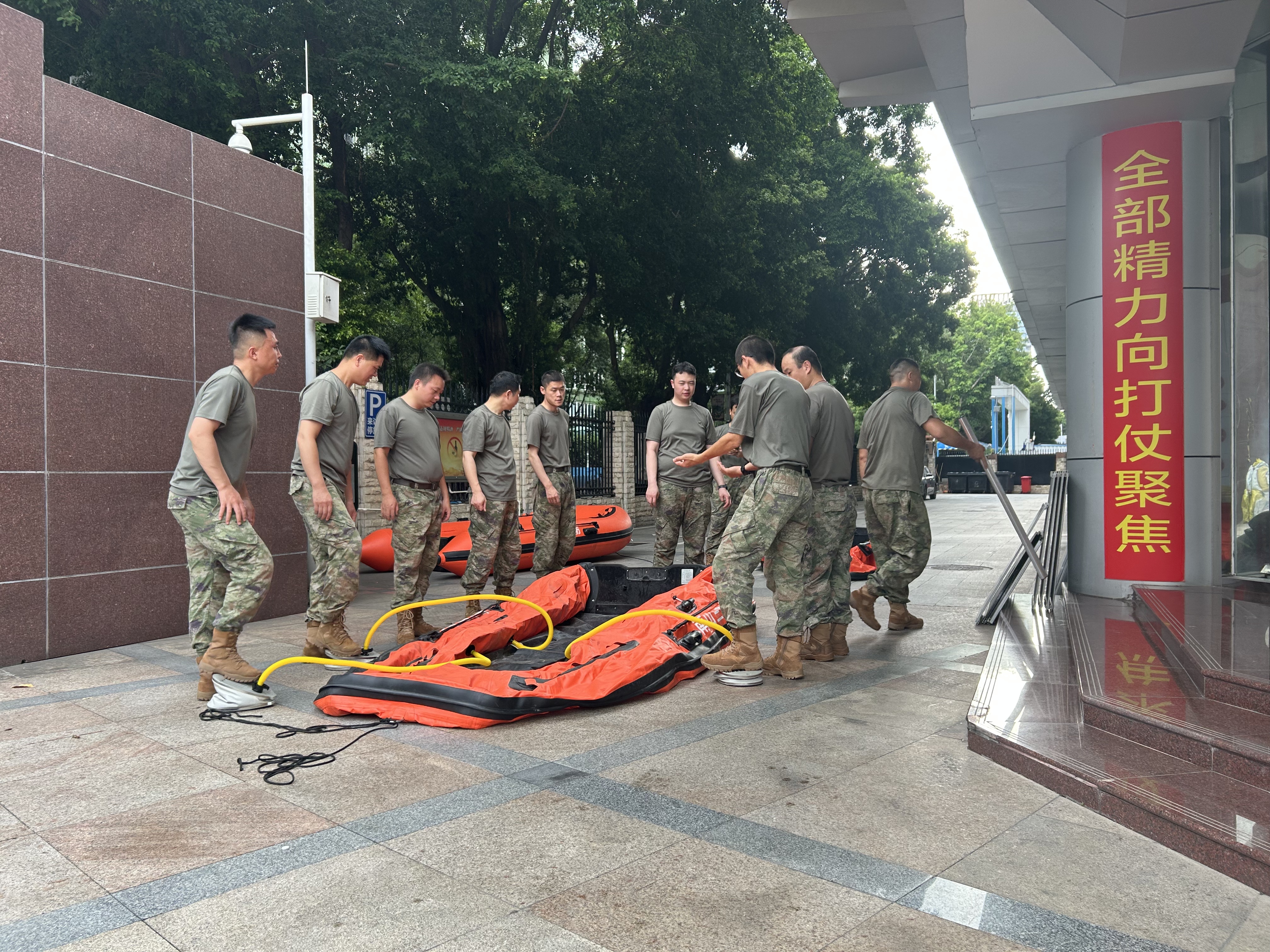 “一组负责户外救援灯架设,二组调试冲锋舟及救生设备!”指挥员一声令下,各小组如离弦之箭,直奔院区指定区域。