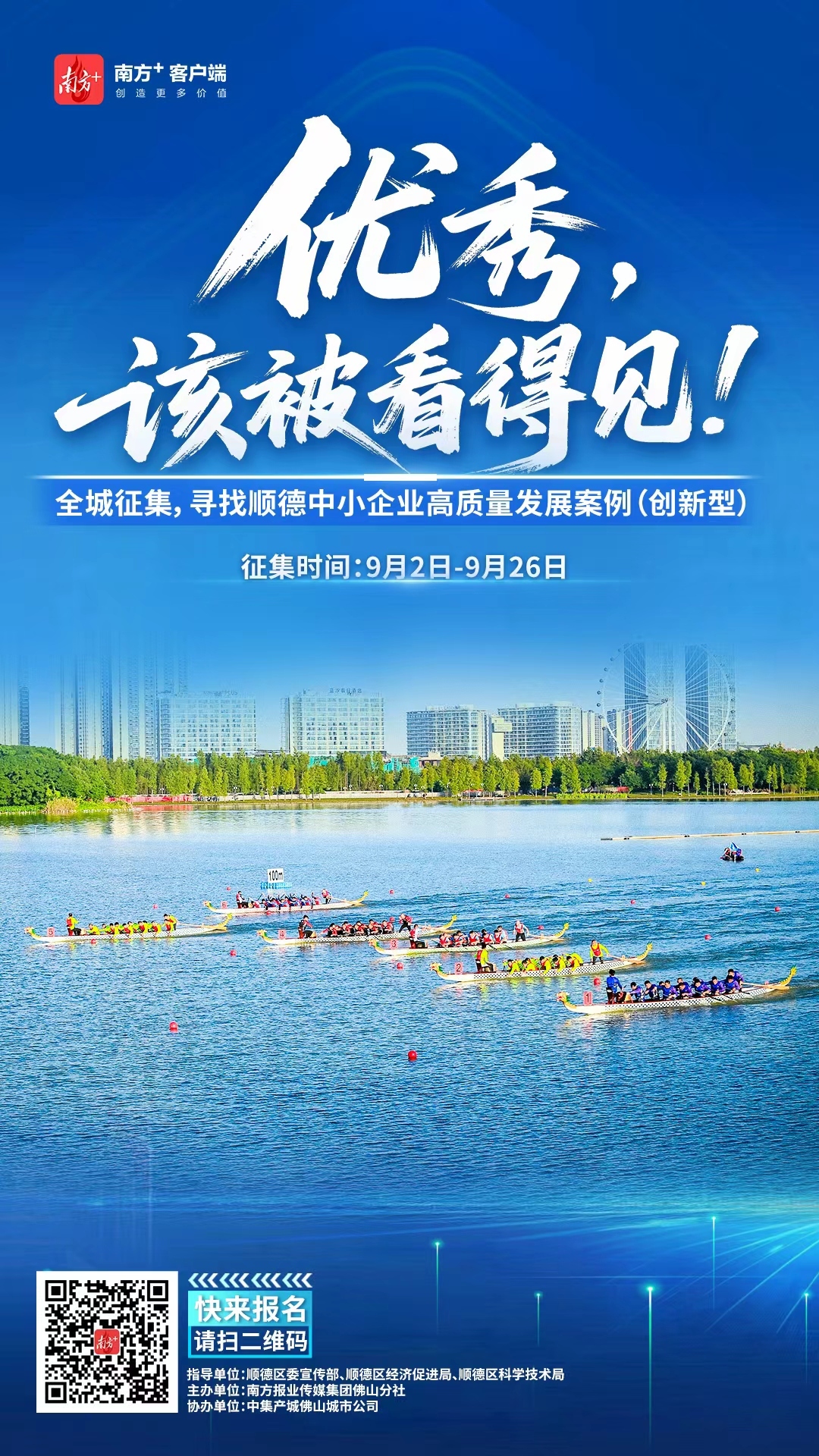 最近,由顺德区委宣传部、顺德区经济促进局、顺德区科学技术局指导,南方报业传媒集团佛山分社主办,中集产城佛山城市公司协办的顺德中小企业高质量发展案例(创新型)征集行动已正式启动。此次寻访拟通过资料搜集、实地调研等方式,挖掘一批在新赛道、新技术上闪闪发光的“星星企业”,为顺德迈向高质量发展积蓄创新动力。快来报名吧!链接>>
