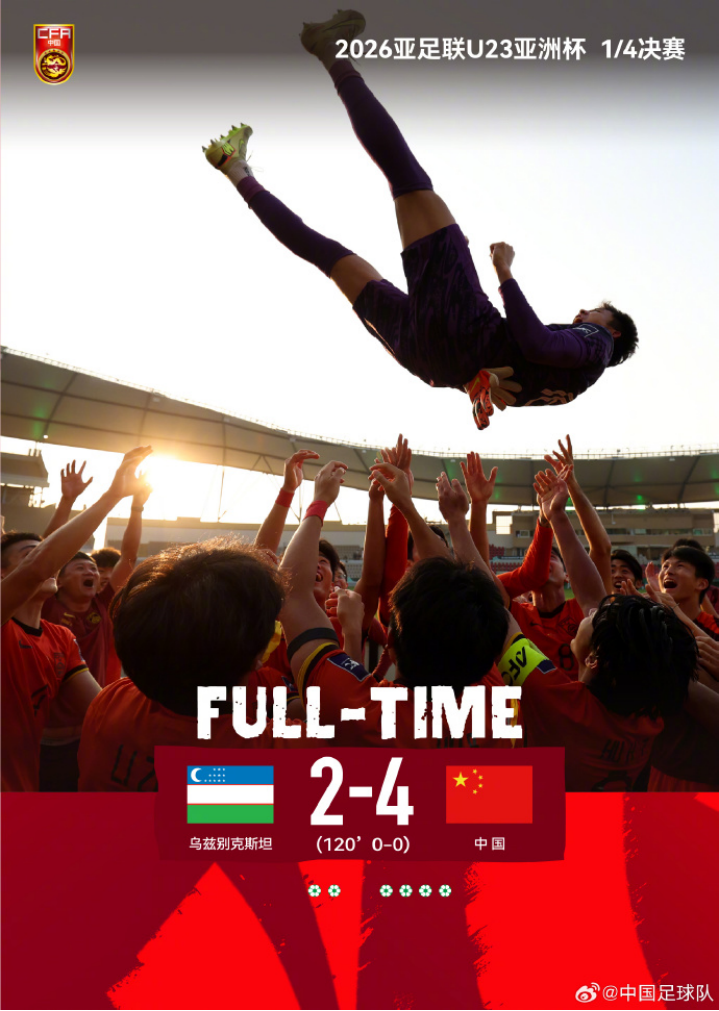 U23国足点球击败乌兹别克斯坦海报 图/中国足球队微博