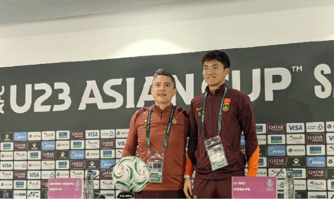 安东尼奥(左)在U23亚洲杯新闻发布会 图/咪咕足球