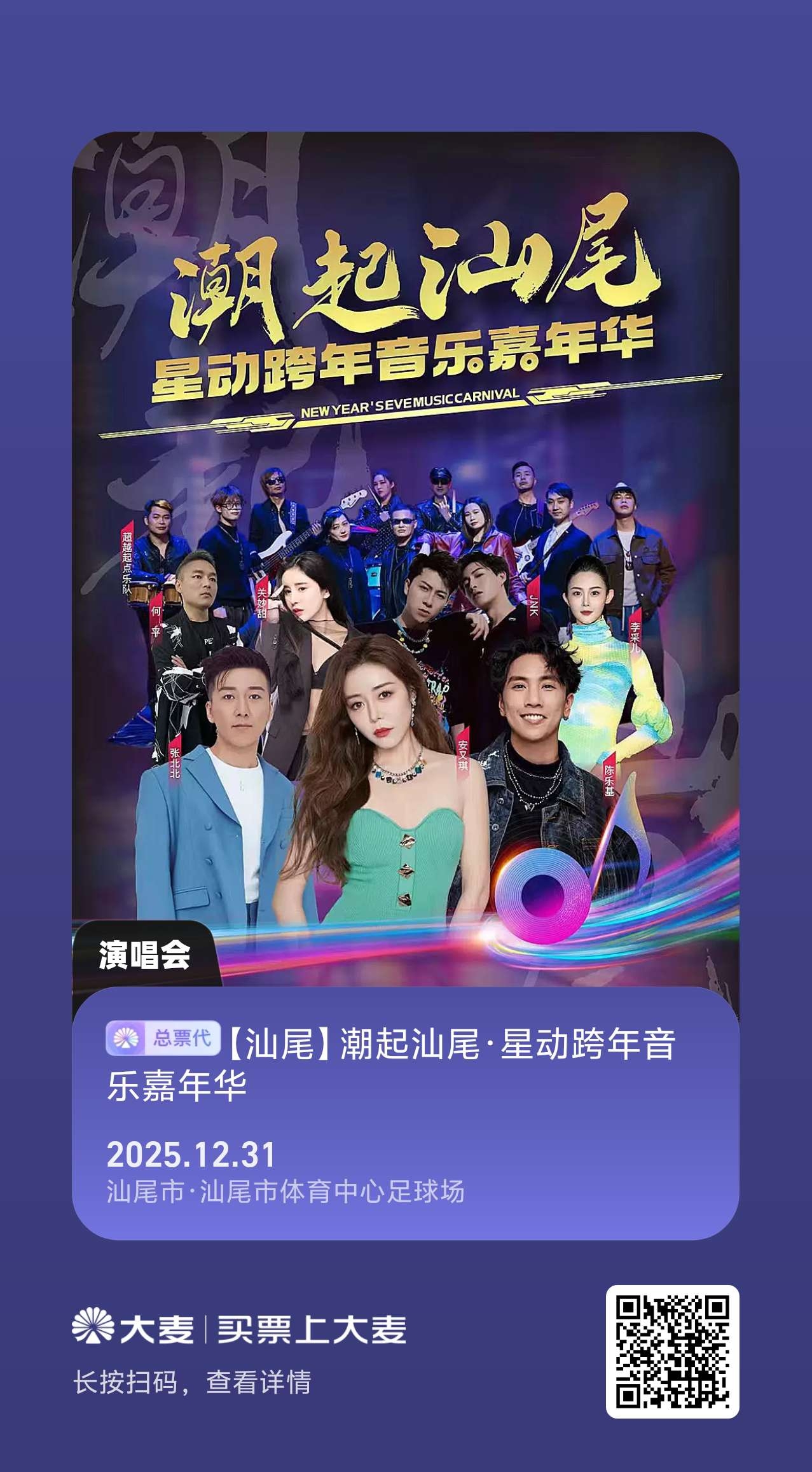 12月31日19:30,潮起汕尾・星动跨年音乐嘉年华将在汕尾市体育中心举行,邀您共赴一场跨年音乐盛宴,别错过这场属于汕尾的跨年狂欢!南方+记者 陈保良 南方日报、南方+客户端原创,未经授权不得转载 编辑 李恺莉校对 吴荆子 订阅后可查看全文(剩余80%)