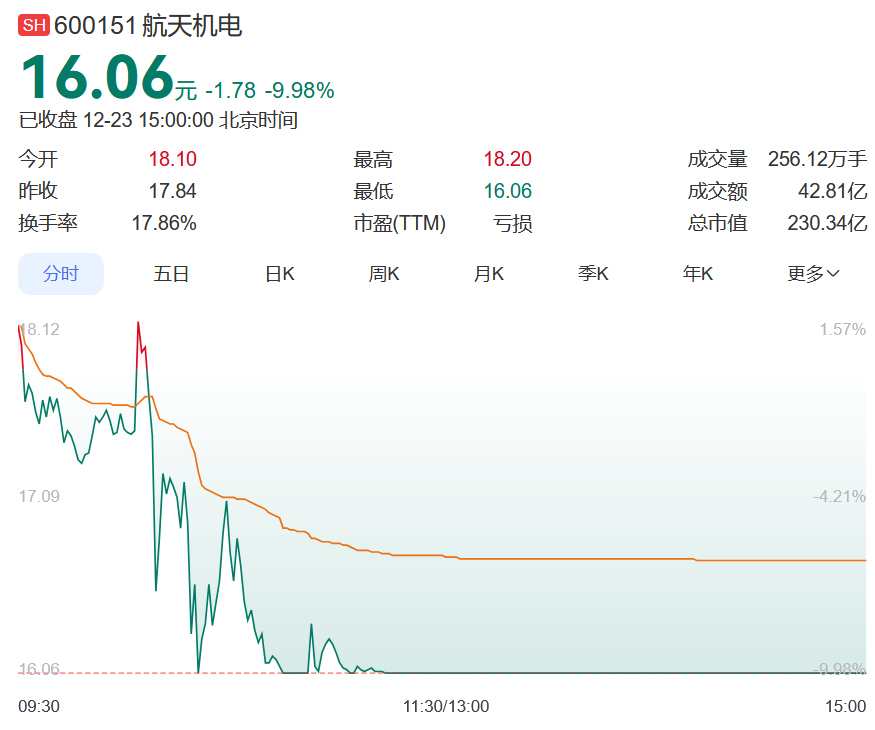 上午10:00,火箭点火发射,股价如火箭般直线拉升,10:04至最高点。之后就是直线下跌,弹起,又砸下,至跌停。整个商业航天板块也一同跳水。
