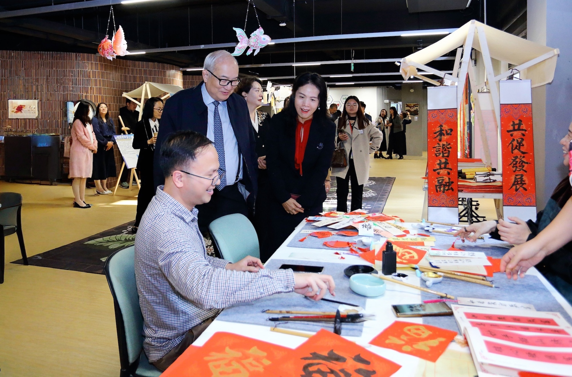 义工谢文星在现场展示的对联“家馨深港双城睦,智汇湾区四海融”,道出了该平台的愿景:让家庭的温馨促进双城和谐,让智慧的汇聚服务更广阔的区域融合。