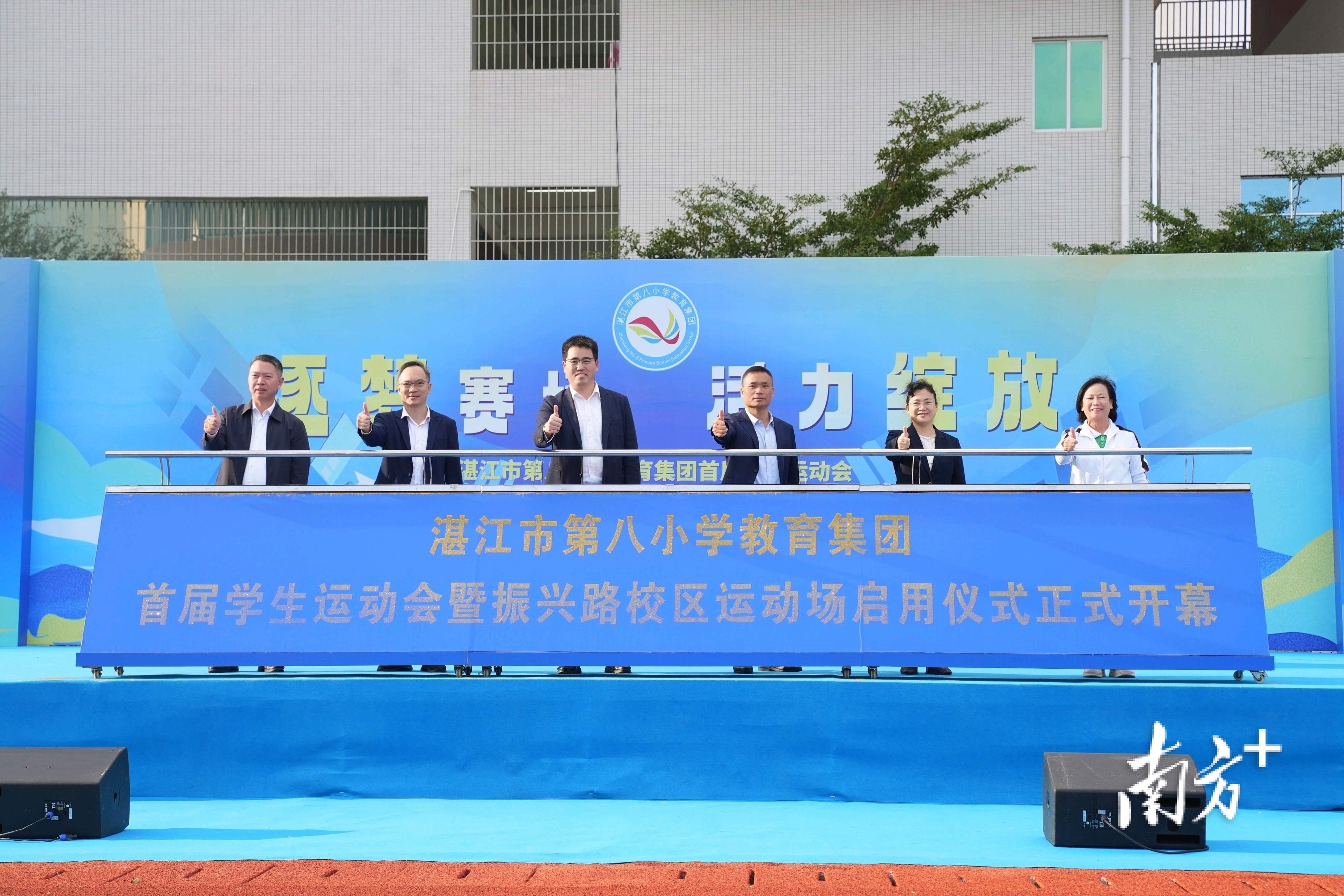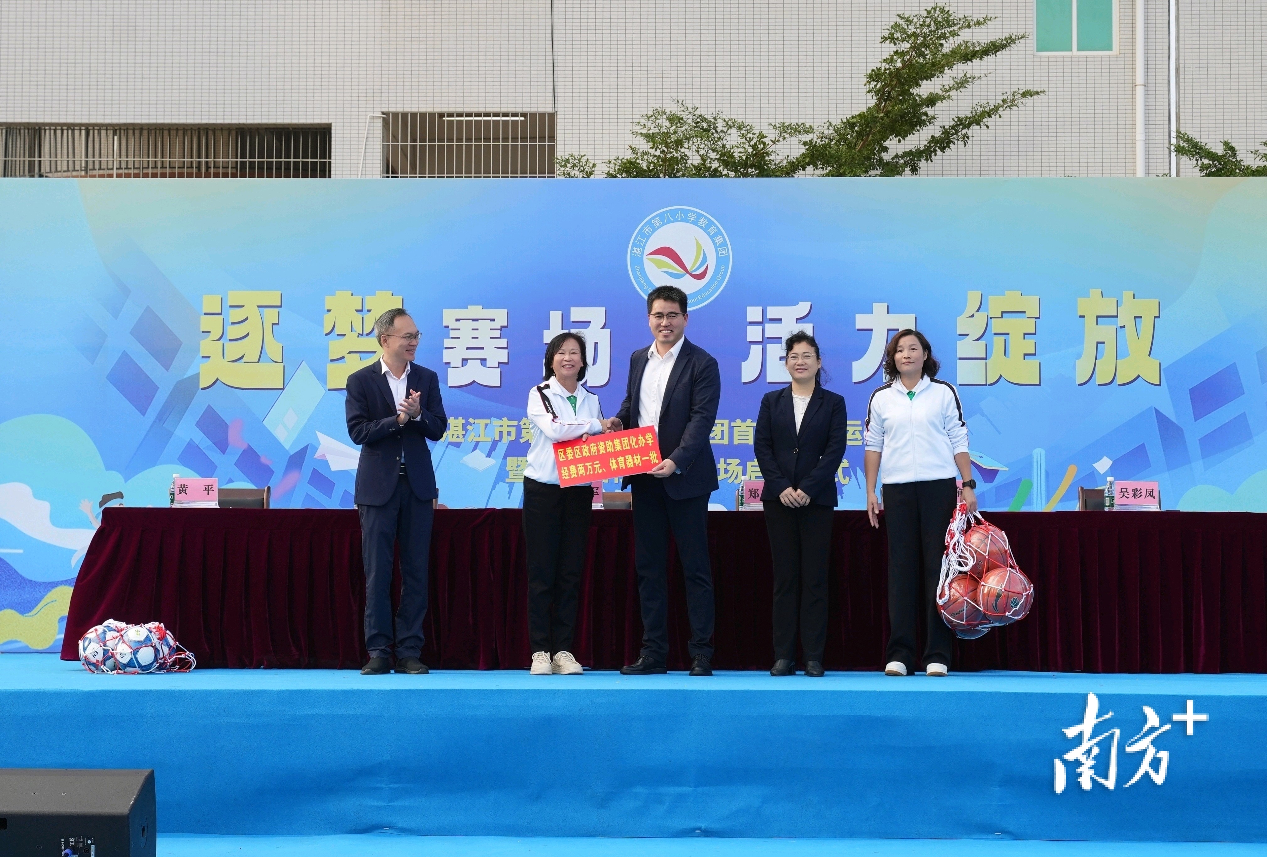 活动仪式上,湛江市第八小学教育集团振兴路校区运动场正式启用。区委、区政府不仅为集团化办学注入2万元支持资金,还送来了一批崭新的青少年体育器材。这份实实在在的“体育礼包”递交到学校代表手中,传递着对孩子们茁壮成长的真挚关怀。