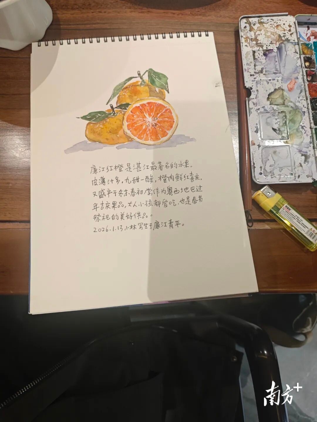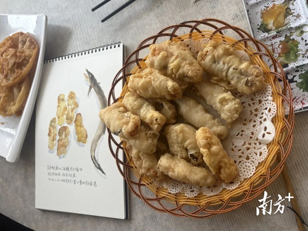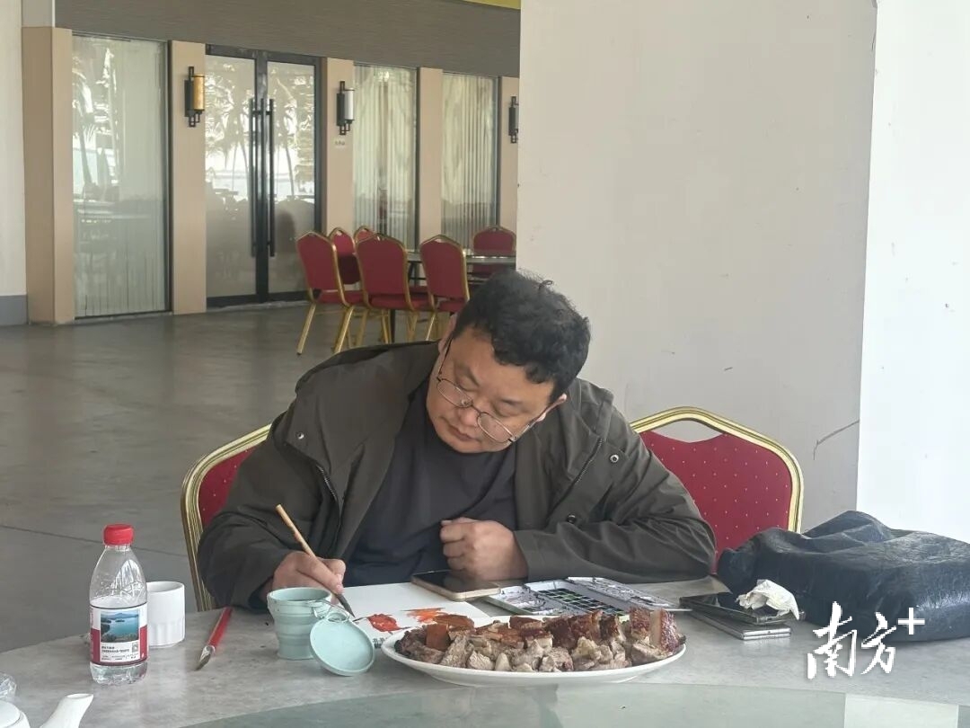 1月13日,小林老师走进廉江开展采风创作。伴着浓郁的烟火气息,他现场铺展画纸、挥毫泼墨,将六种廉江特色美食一一勾勒。