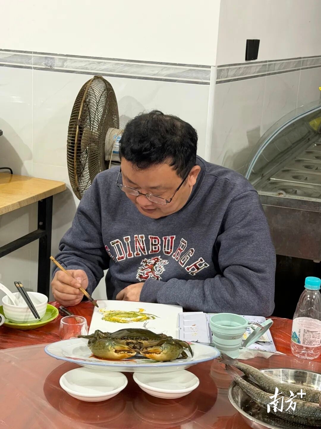 小林老师还走进了坡头区莫村,在乡村饭店里记录当地居民的“烟火气”。莫村斋鱼、对虾、湛江湾实验室培育的黄油蟹等独具湛江坡头特色的海鲜,都在他的笔下生动呈现。
