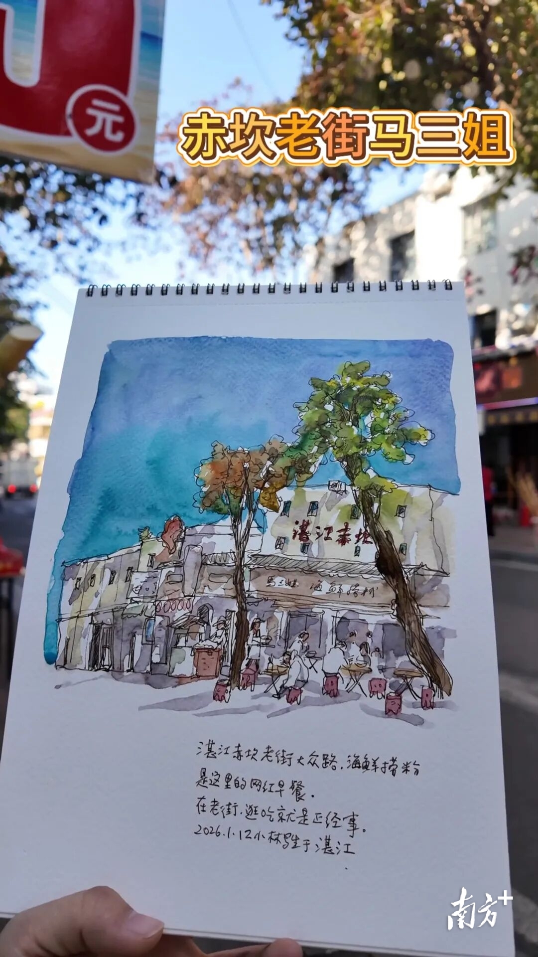 1月12日上午,小林老师的采风脚步踏入赤坎老街,在南洋骑楼与市井烟火的交织里,用画笔定格这条街的鲜活肌理。