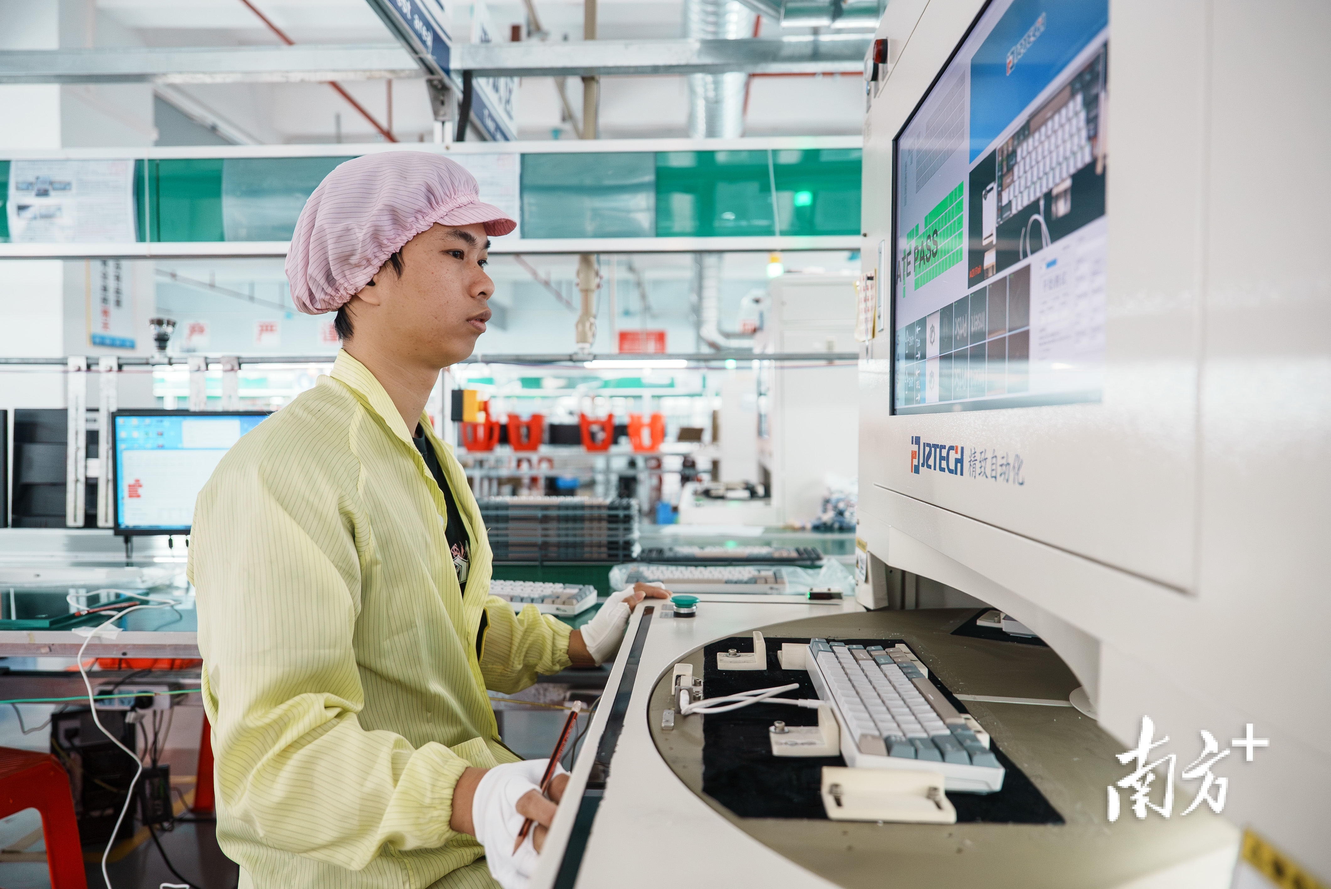 京恒腾伟主营的产品,是用于电子竞技游戏的专业机械键盘、电竞游戏鼠标、游戏手柄、耳机和音箱。在园洲,京恒腾伟打造了自主研发的全套自动化生产线,配备国内资深电子研发团队,专注于游戏装备外设的研发和生产,成为集研发、生产、销售于一体的大型企业。张进介绍,2025年,受国内国外市场波动影响,企业营收额有所收缩,大约为3亿元。