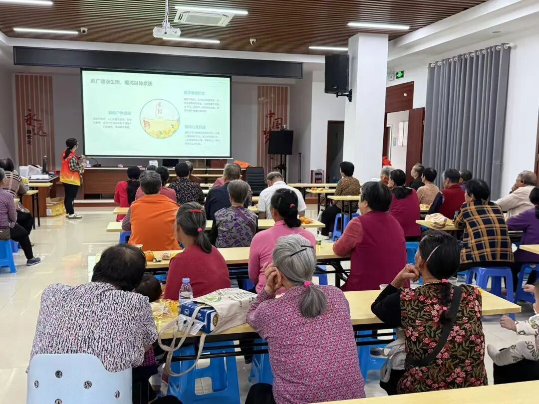 前进村党总支联合横沥社工站、横沥社区医院开展“健康伴夕阳,慢病巧守护”主题讲座。此外,前进村党支部还为村内60岁以上的长者送上米、油、慰问金等慰问品,让关怀看得见、摸得着。
